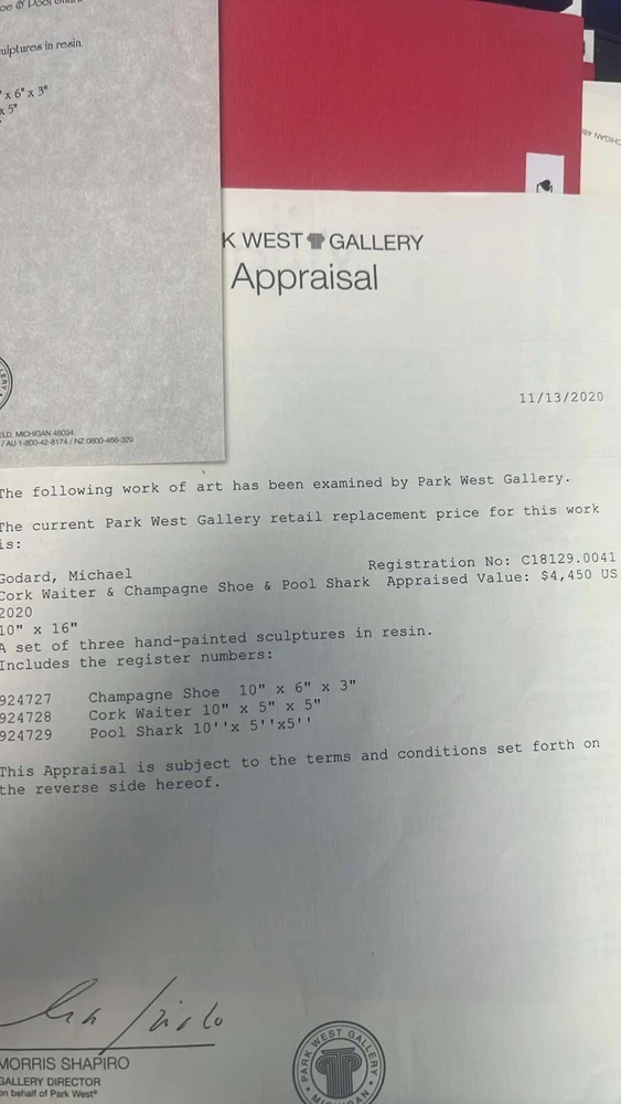 Material:ResinUnit of Sale:Single PieceTime Period Produced:2020-NowFeatures:Hand Signed LE, COAOriginal/Licensed Reproduction:Licensed ReproductionCOA Issued By:Park West GallerySize:MediumYear of Production:2020Item Height:10 inSigned:YesArtist:Michael GodardTheme:cork waiterCertificate of Authenticity (COA):YesSigned By:Michael GodardTitle:Pool SharkType:SculptureProduction Technique:resin sculptureCountry/Region of Manufacture:United StatesFormat:StatueStyle:Contemporary ArtSubject:wine cork, waiter