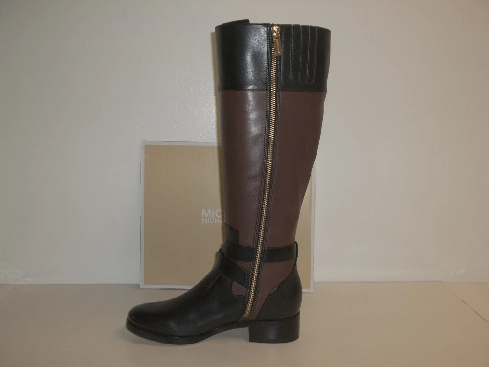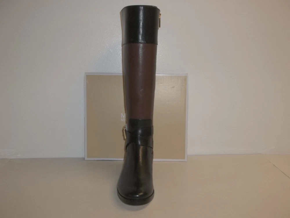 Michael Kors Size 5.5 M BRYCE TALL Black Mocha Leather Boots New Womens Shoes -Style: 40F5BYMB8L -Color: Blk/Mocha -Leather upper -Leather and textile lining -Leather insole -Man made outsole -Heel height is approximately 1.25 inches -Shaft height is approximately 14.75 inches -Top to bottom is approximately 16 inches -Boot opening measures approximately 15 inches and flexible -Emblem and zipper are gold color