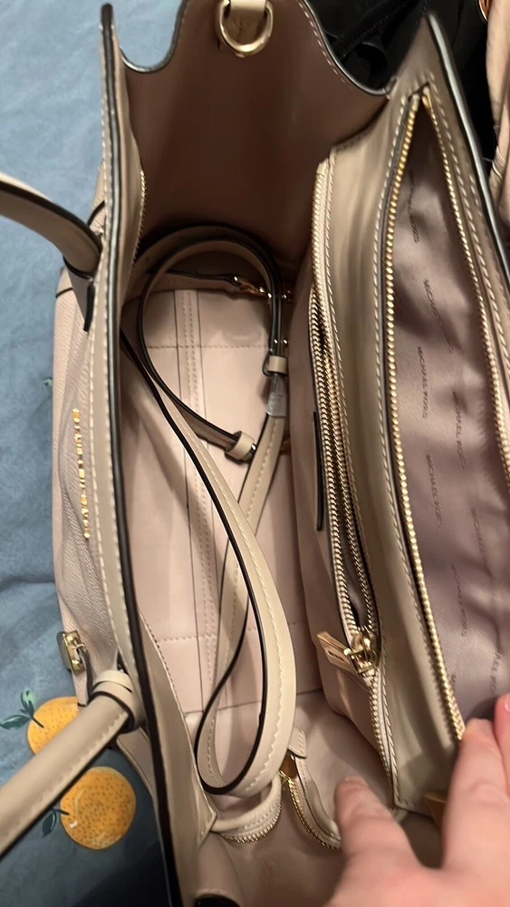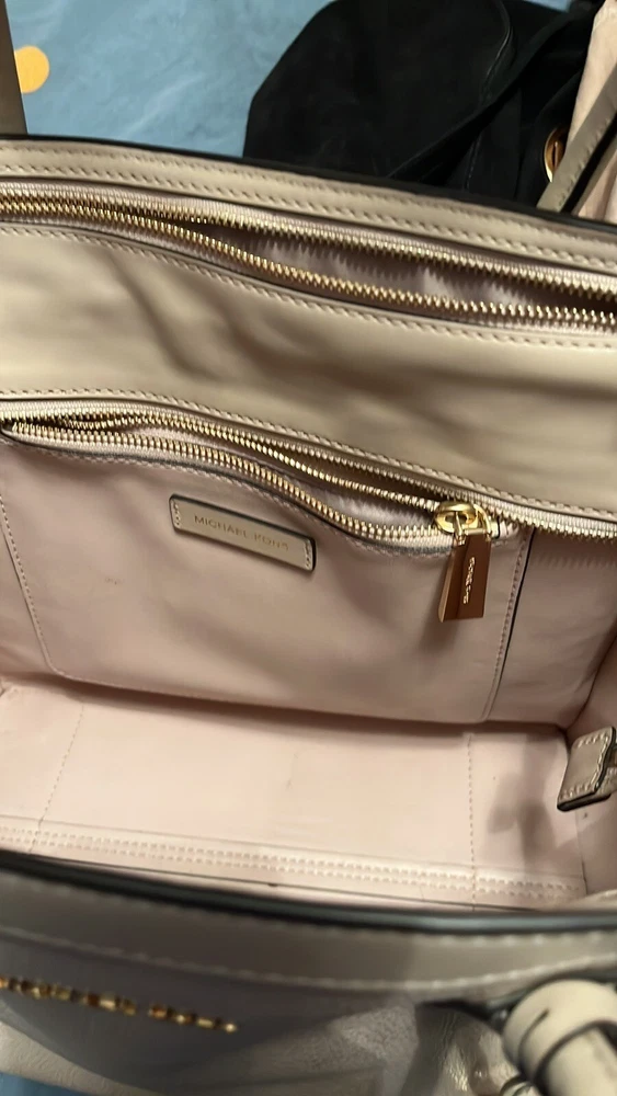 michael kors handbag used buy now tote. Condition is Pre-owned. Shipped with USPS Priority Mail. Leather MK Lock Charm & Gold Tone Hardware Top Zip Closure Two Zip Pockets & One Slip Pocket Dual Top Handle with about 7" Drop Approx. Dimensions:11 3/4" (L) (bottom) x 10 3/4" (H) x 6 1/2" (W) Detachable Adjustable Shoulder Strap Drop with 20 1/2" Dust bag included