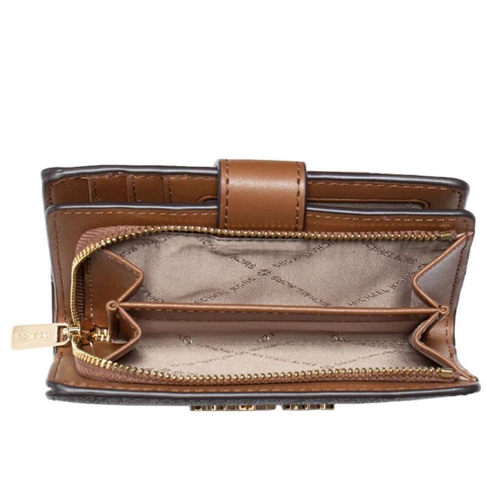 MICHAEL KORS Medium Bifold Zip Coin Credit Card Holder Wallet Signature Brown $258 Color: Brown Retail $258.00 Style: # 35F8GTVF2B Material: Crossgrain Leather. Size: 5.25"L X 3.5"H X 1.25"D Medium Gold-tone hardware.