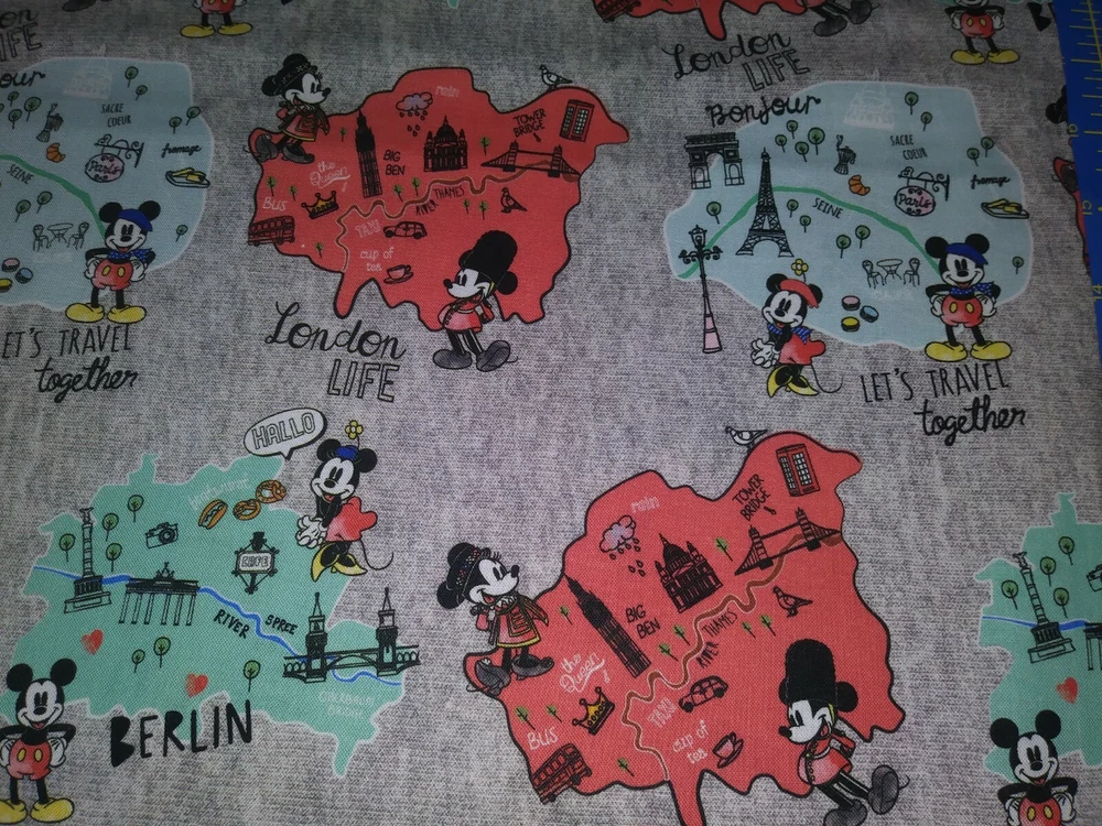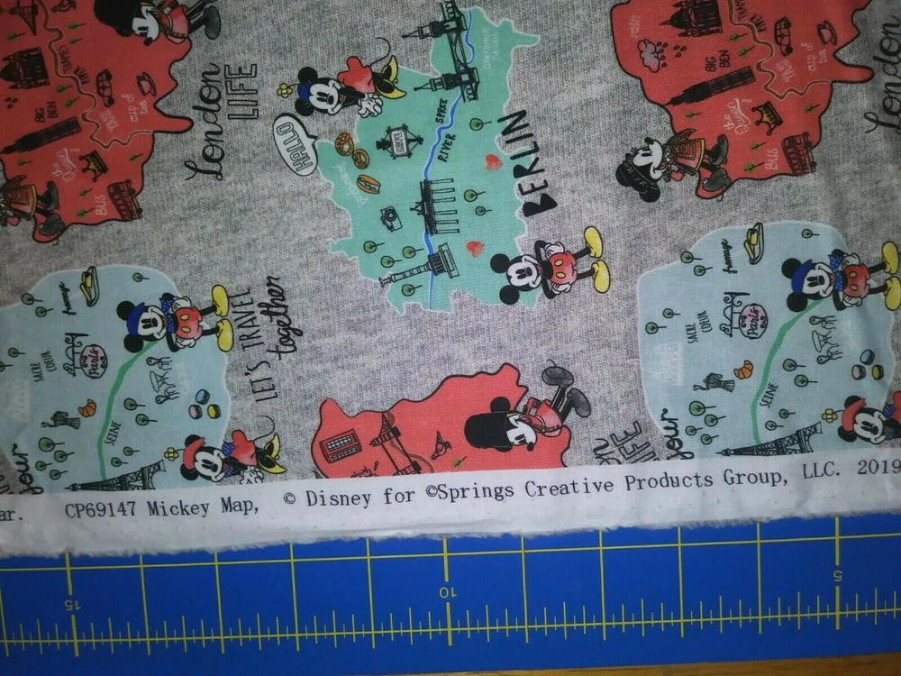 Mickey & Minnie Travel Map fabric Berlin, London & Paris 100% cotton If more than one yard is purchased will be in a continuous piece Fabric is 43" wide. New, never washed If you want more than 4 yards, message me prior to purchase and I can try to do lower shipping. No one here smokes but a couple of the cats are pretty heavy drinkers! Payment is due within 3 days. If you need more time or are bidding on multiple items please message me. I package well and ship quickly. I happily combine shipping on multiple purchases within the same week. If you need to return an item, please use Ebay Returns. If you have a problem with an item, please get in touch with me before going through Ebay or leaving feedback. I'm sure we can find a solution. Please remember I'm human and sometimes make a mistake. International bidders please email BEFORE bidding for shipping costs outside of USA.