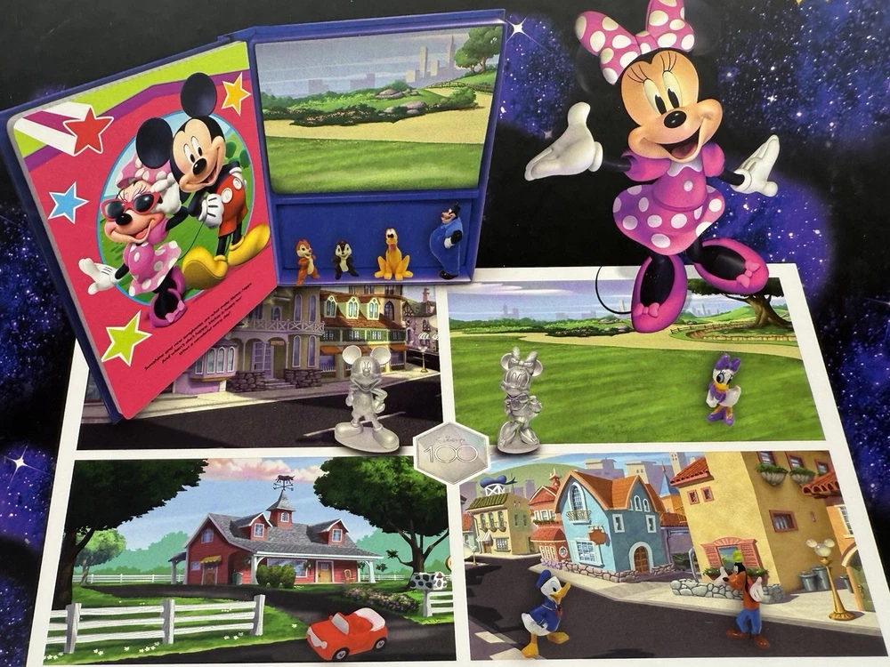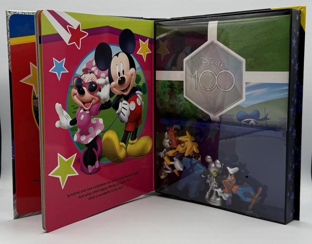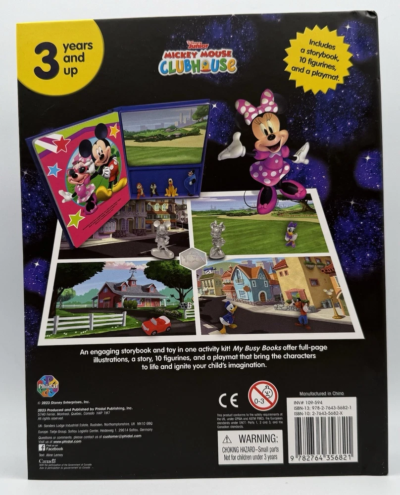 The Mickey Mouse My Busy Story Book 100 Plus Playmat and 10 Figurines is an engaging activity book for children ages 4-8, featuring a Disney Junior narrative in English. Published by Phidal Publishing, this board book includes figurines for interactive storytelling. With a focus on adventure and the beloved Disney characters, this 100th anniversary edition is sure to entertain and inspire young fans to explore the magical world of Disney.