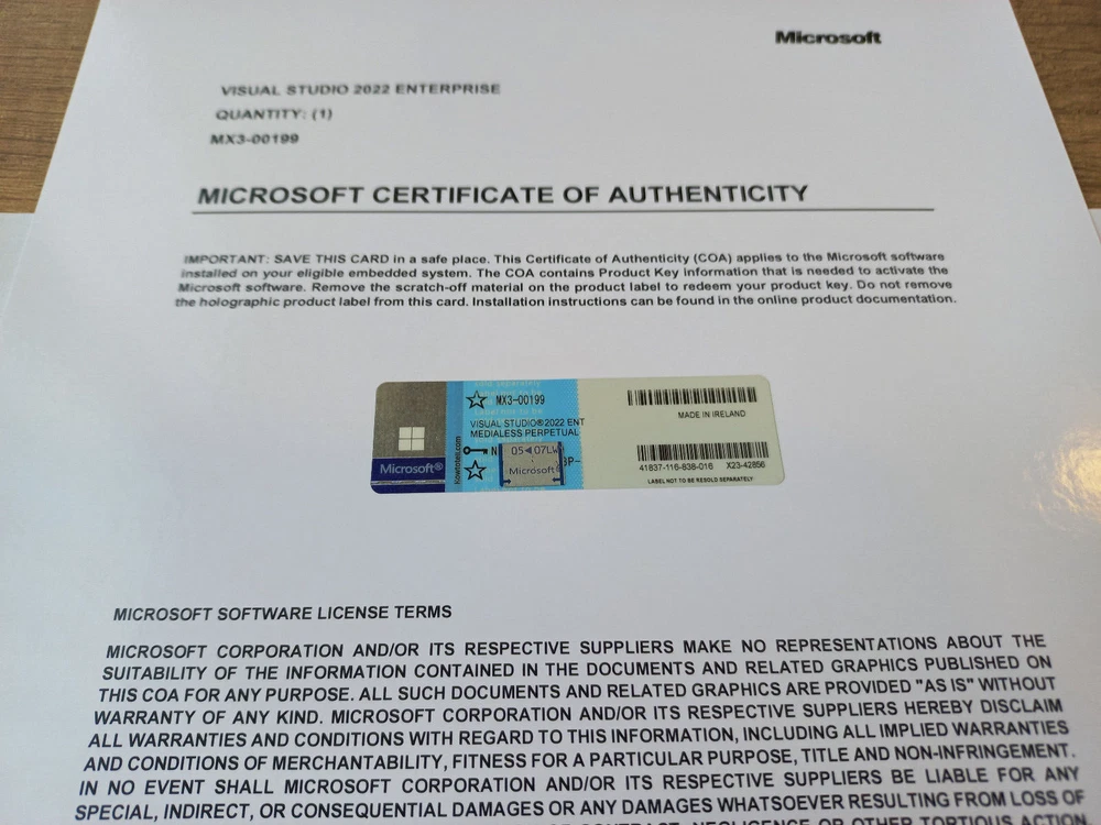 This is a Physical Item. Shipping from USA by USPS Priority. The item is Authentic item! THIS IS NOT A SUBSCRIPTION, this is a lifetime License. The listing offers a genuine license on a holographic product label and a Certificate of Authenticity. After Your purchase, You get your License on a genuine holographic and Certificate of AuthenticityProduct key shipped to your address. We can provide You invoices as well if needed. LIFETIME WARRANTY & SUPPORT Unlock the full potential of your software development projects with Visual Studio 2022 Enterprise. This comprehensive professional development software offers a robust suite of tools and features designed to streamline your workflow, enhance collaboration, and boost productivity. Key Features: Advanced Coding Tools : Write code with ease using powerful editors, debuggers, and code navigation tools. Integrated Development Environment (IDE) : Enjoy a seamless development experience with an intuitive and customizable IDE. Collaboration Tools : Collaborate efficiently with team members using built-in version control and collaboration features. Code Quality Assurance : Ensure high code quality with built-in testing, profiling, and code analysis tools. Support for Multiple Platforms : Develop applications for various platforms including desktop, web, cloud, and mobile. Optimized Performance : Experience fast build times and improved performance, allowing you to focus on coding without interruptions. Enterprise-Grade Security : Protect your projects and data with enterprise-grade security features. Whether you're a seasoned developer or just starting your journey in software development, Visual Studio 2022 Enterprise provides the tools and support you need to bring your ideas to life. Upgrade your development environment today and take your projects to the next level. Don't miss out on this opportunity to acquire the industry-leading professional development software. Place your bid now and revolutionize your development process with Visual Studio 2022 Enterprise.