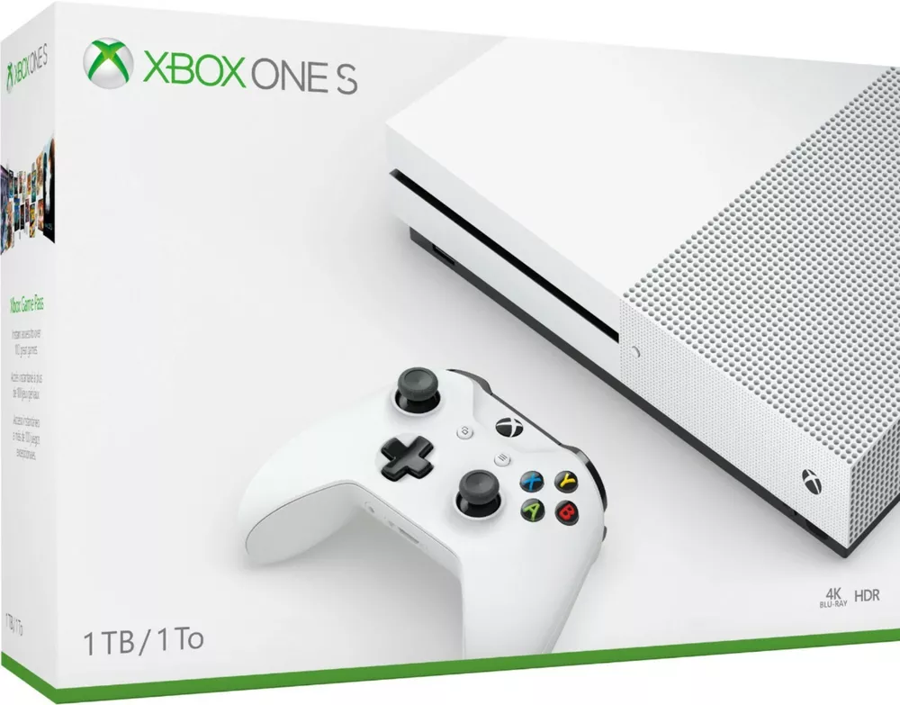 Elevate your gaming experience with the sleek Microsoft Xbox One S, boasting a 1TB hard drive to store your favorite games, apps, and media. The white console is a stylish addition to any entertainment setup, complemented by its 4K UHD resolution for crisp, vivid visuals. Enjoy a seamless gaming experience with Wi-Fi capability, internet browsing, and connectivity options including HDMI and USB-A ports. The Xbox One S is also Blu-Ray compatible, offering a versatile home console experience for both entertainment and play.