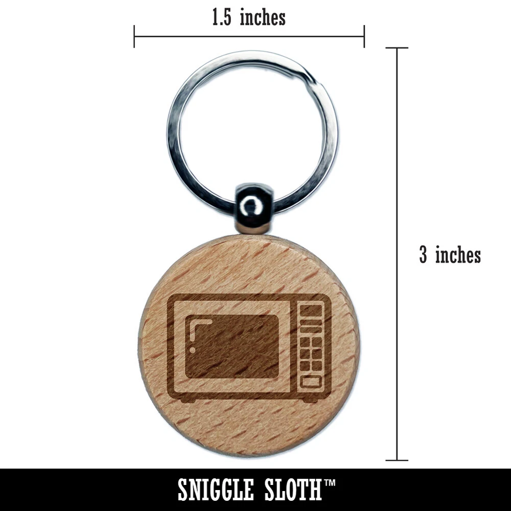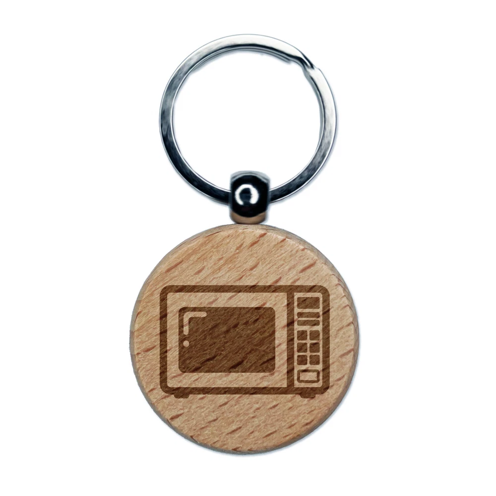 Microwave Kitchen Appliance Engraved Wood Round Keychain Tag Charm