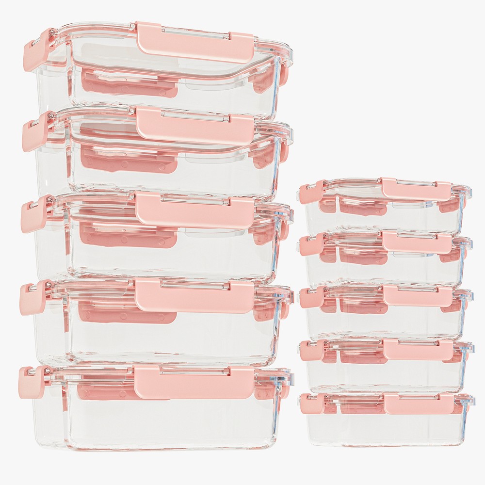 Item description from the seller Buling 20 Pc Glass Food Storage Containers Airtight Lids Microwave/Oven/Freezer & Dishwasher Safe - Steam Release Valve BPA/ PVC-Free -Small & Large Reusable Square & Rectangle Bento Containers 20 piece set - This set includes 10 glass food storage containers 10containers each container has 10 lids. It consists of 5 square containers (34 ounces) and 5 rectangular containers (14 ounces), providing multiple options for storing different types of food BUILT IN VENT - If you want a container that you can pop directly in the microwave or oven, look for a glass container with built-in vents under the locking lid. This type of lid provides the airtight storage you need to keep your food fresh and the convenience you need to reheat food in seconds Airtight And Watertight Silicone Sealed BPA-Free Plastic Lid. Plus Four Tab Locking System. VERSATILE USE - Our food containers are made of high-quality borosilicate glass, ensuring a long service life and providing you with peace of mind. You can use them with confidence in ovens, microwaves, dishwashers (with lids removed), and freezers, as they are BPA free and suitable for daily use.The lid adopts an airtight sealing design to prevent overflow and keep the food fresh. They are easy to clean, suitable for home, office, meal preparation, and dining out, catering to different lifestyles. Multiple options- These containers are not only used for storing food; They can also be used as convenient containers for preparing meals. Whether you are preparing meals or packing work lunches, our glass food storage containers are the ideal choice. Suitable for families, professionals, and students, providing flexible food storage solutions for daily use Elaborate design - Our innovative design simplifies the storage and inspection of items. It helps save valuable space in kitchen cabinets or refrigerators. Transparent glass provides a beautiful and charming display cabinet, making it effortless to identify the items stored inside.