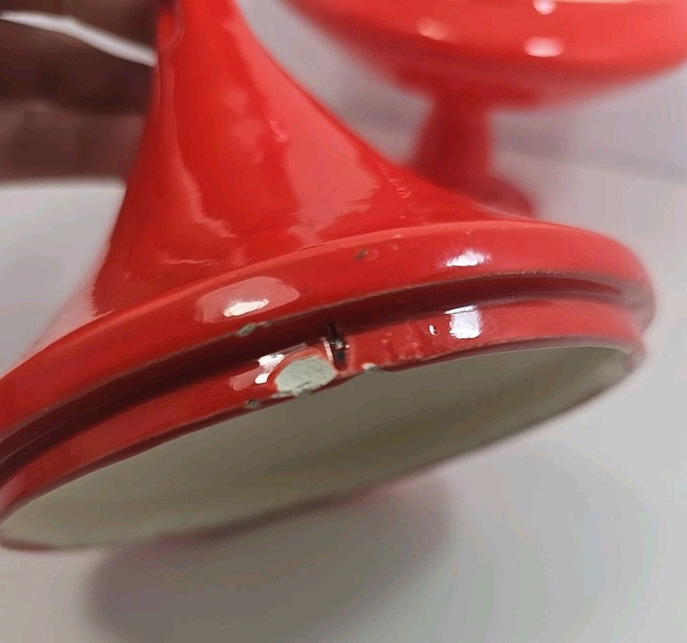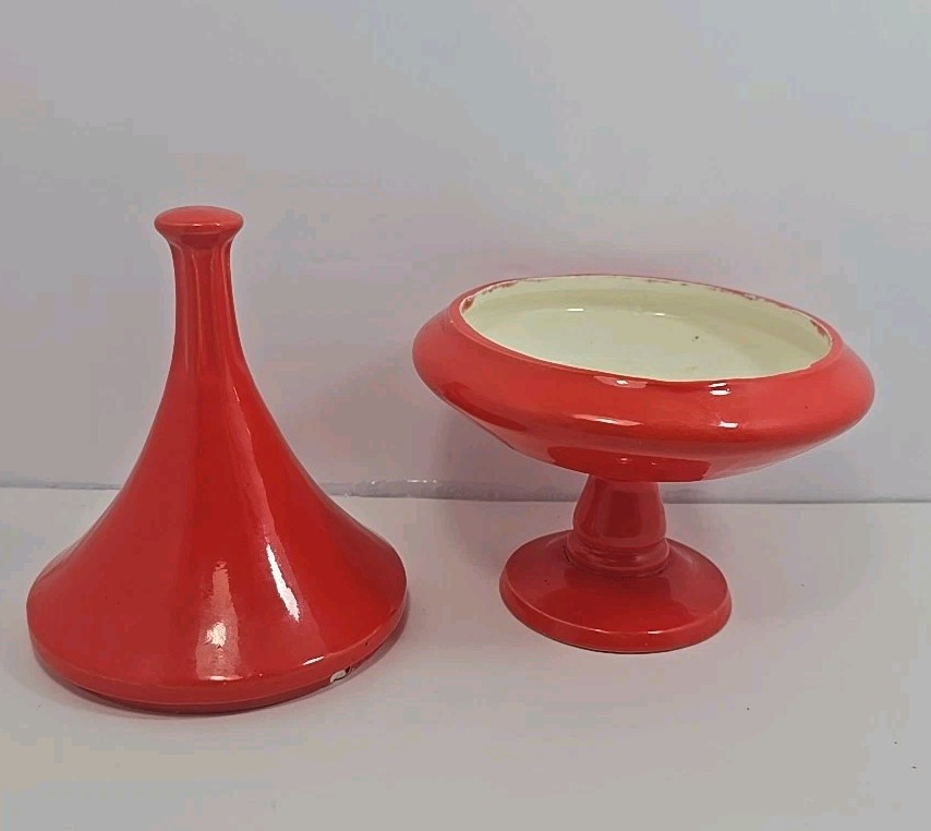 Vintage:YesBrand:UnmarkedProduction Technique:PotteryShape:RoundType:Candy DishNumber of Compartments:1Color:OrangeMaterial:GlassOriginal/Licensed Reproduction:OriginalFinish:GlossyTime Period Manufactured:1960-1969Style:Retro