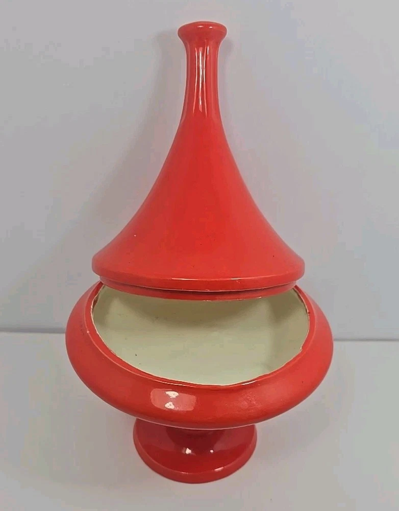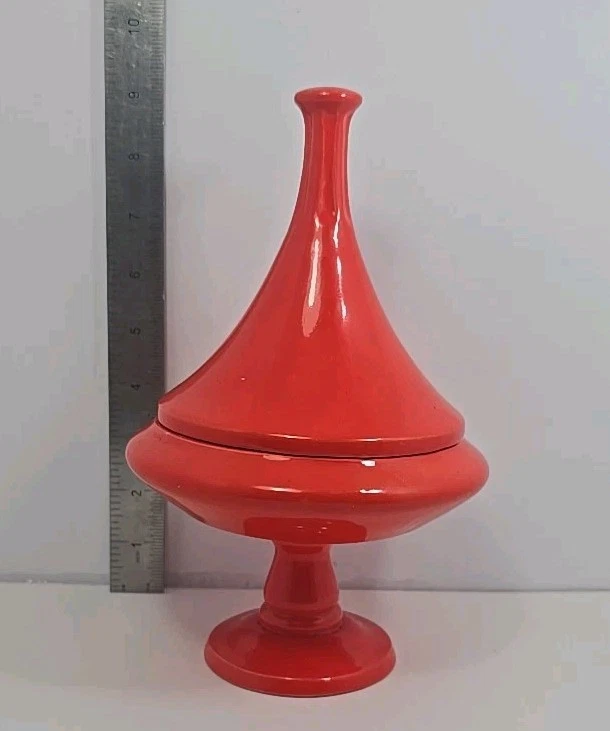 HomeMid Century Modern Retro Candy Dish Trinket Bowl Vase Planter in Red Orange 8.5 Inches Tall