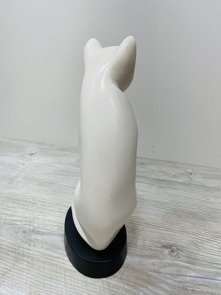 The li Ching resin cat sculpture is in good condition with no chips or cracks. It does have some spots and markings. It measure 12 and three-quarter inches high by 5 1/2 inches wide and 4 inches long .