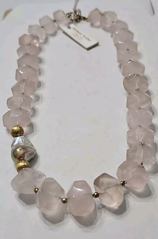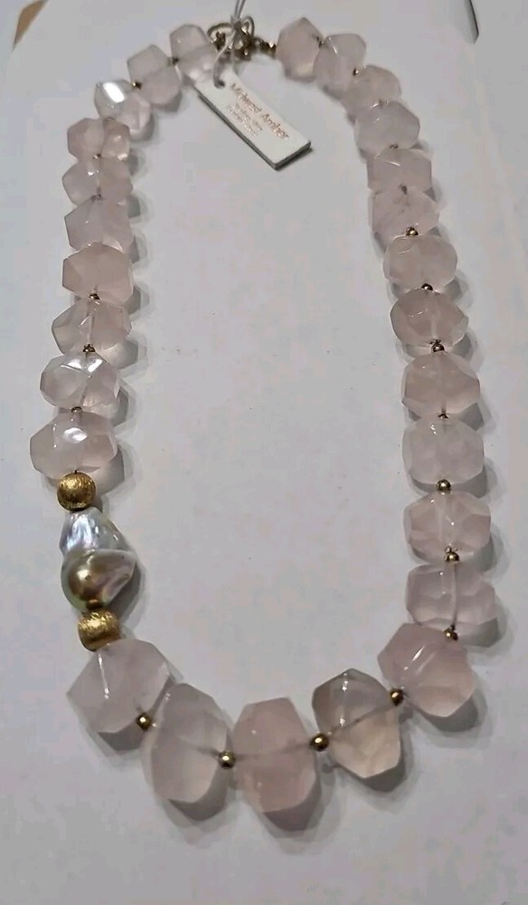 Elevate your style with this stunning Midwest Amber Rose Quartz Necklace. The necklace features a beautiful Baroque Pearl that adds a touch of elegance to any outfit. The pendant is crafted with high-quality materials that ensure durability and longevity. The necklace comes in a stylish Choker style that complements any neckline. The orange color of the pendant is sure to catch the eye and make a statement. This necklace is perfect for any occasion, whether it's a formal event or a casual day out. The pearl and baroque pendant make it a unique piece of jewelry that will surely impress anyone who sees it. The Midwest Amber Rose Quartz Necklace is a must-have for anyone who wants to add a touch of sophistication to their wardrobe.