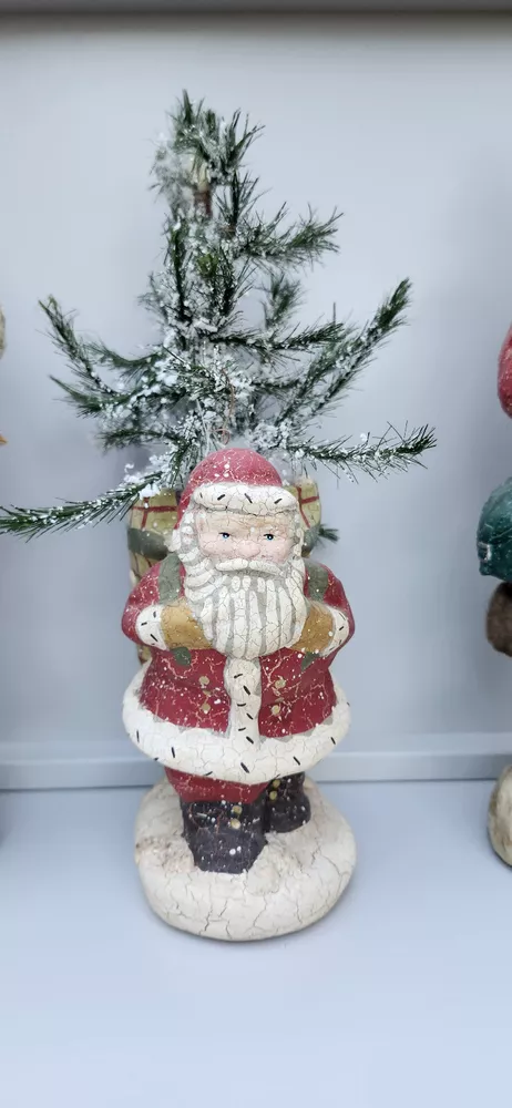 🎅 Lot of 3 Midwest of Cannon Falls Old World Santas with Crackle Finish! Santa with Lantern & Cardinal: 12" tall x 6" wide Santa with mini tree & Satchel: 13.25" tall x 3.25" wide Santa with Backpack & Christmas Tree: 12.5" tall x 6" wide