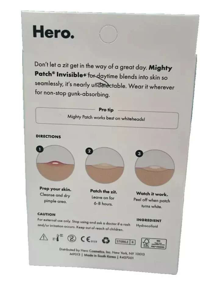 Mighty Patch Invisible+ Hydrocolloid Acne Pimple Patches (24 Count) Exp 2027.