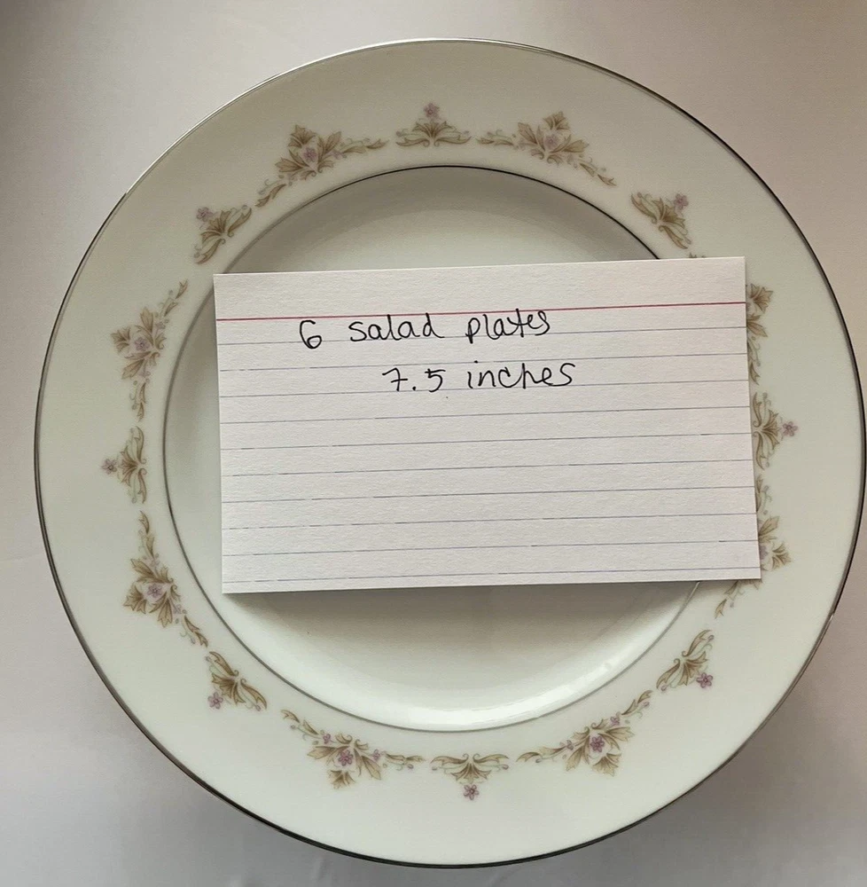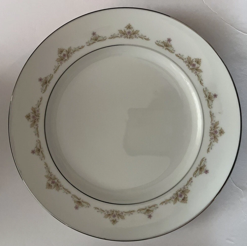 This beautiful bread set from Mikasa's Bernice product line is the perfect addition to any vintage collection. The delicate pink floral pattern and platinum edge detailing make it an elegant choice for your dining table. Listing includes: 6, 7.5 inch bread plates No chips or cracks Design in excellent condition