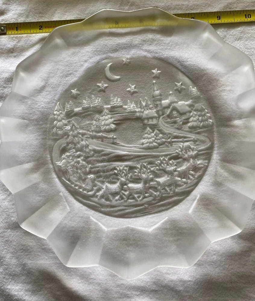 Add a touch of festive charm to your holiday table with this Mikasa Frosted Crystal Plate Platter. Featuring a round shape and a clear crystal material, this large platter is perfect for showcasing your Christmas decor. The intricate design showcases a Santa sleigh with reindeer, making it a perfect addition to your holiday collection. Crafted in Japan, this contemporary style platter is part of the Seasons collection and is perfect for adults. The frosted finish adds a unique touch to the platter, making it a great conversation starter. Whether you're using it to serve your favorite holiday meal or as a decorative piece, this Mikasa platter is sure to impress.