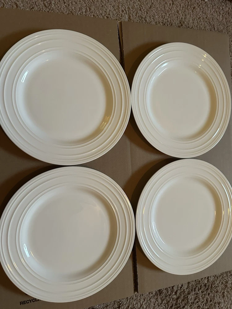Add elegance to your dining table with this Mikasa Swirl White Salad Plate Set. Made of high-quality bone china, this four-piece set is perfect for all occasions. The round plates feature a beautiful swirl white bone pattern that is sure to impress your guests. Not only are these plates stylish, but they are also practical. They are microwave and dishwasher safe, making them easy to clean and maintain. The glossy finish and contemporary style of these plates make them a great addition to any kitchen. Set includes a plate set, salad plate, and regular plate.