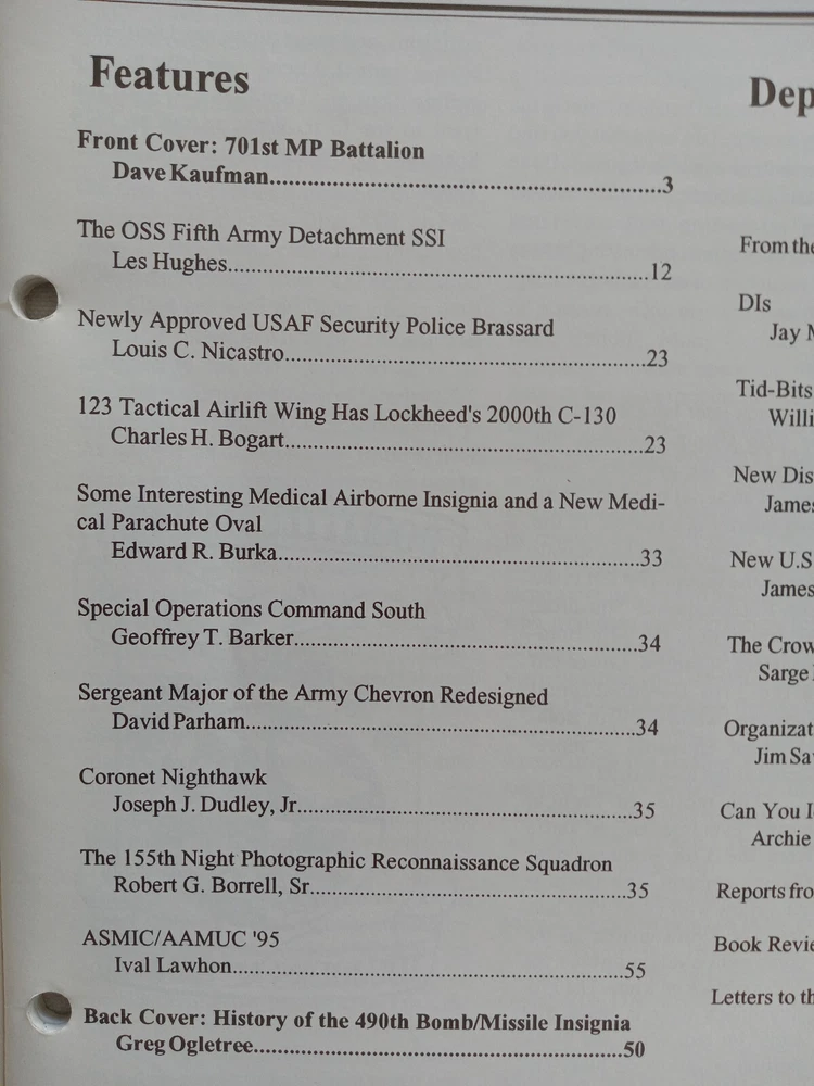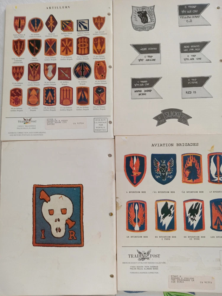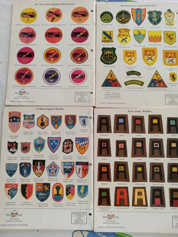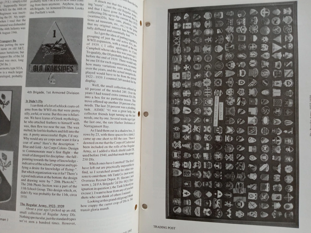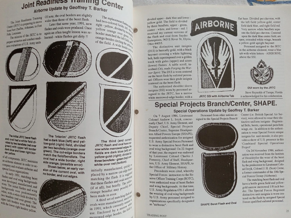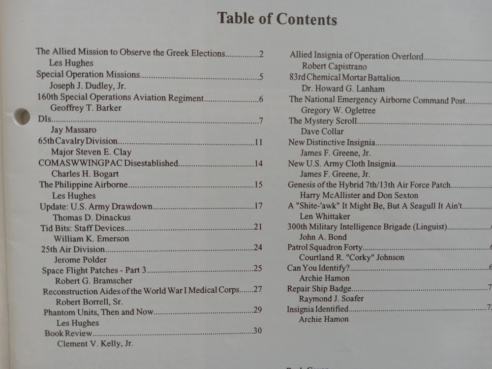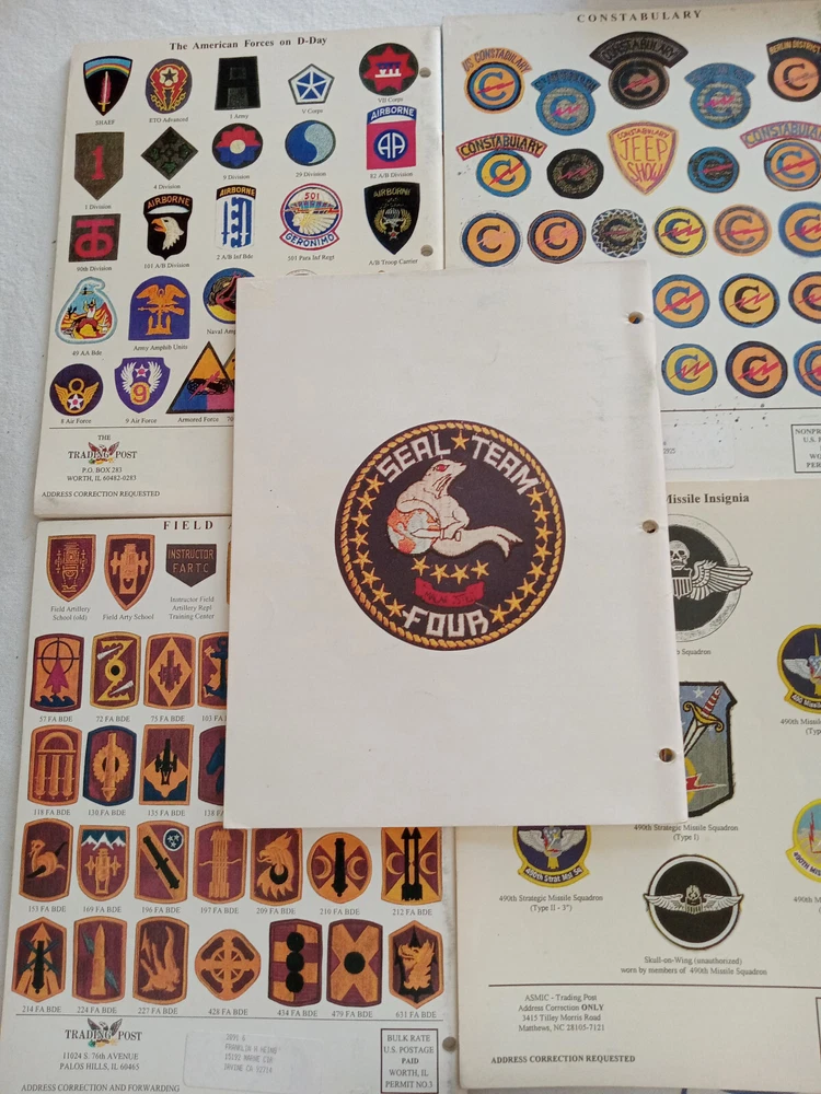 Big lot of 13 issues of The Trading Post from the American Society of Military Insignia Collectors. PACKED with information and images of all kinds of, primarily US, insignia and military history. These date from 1990 to 1995. There are 3 from 1990; 2 from 1992; 3 from 1993; 3 from 1994; 2 from 1995. Table of Contents pictures listed to show the wide variety of information in each issue! As shown. Good general condition with minor to moderate wear, minor blemishes. Some extra wear and blemishes to cover edges and along the spine.
