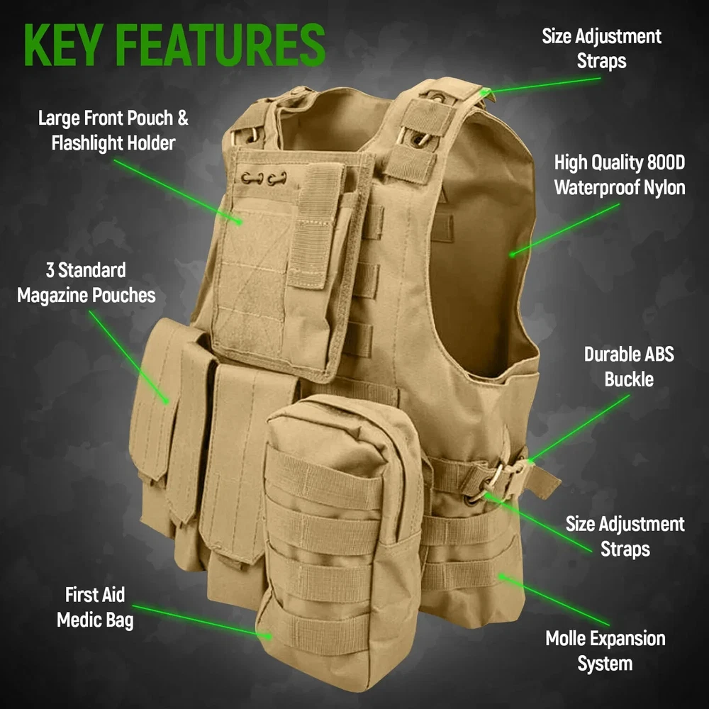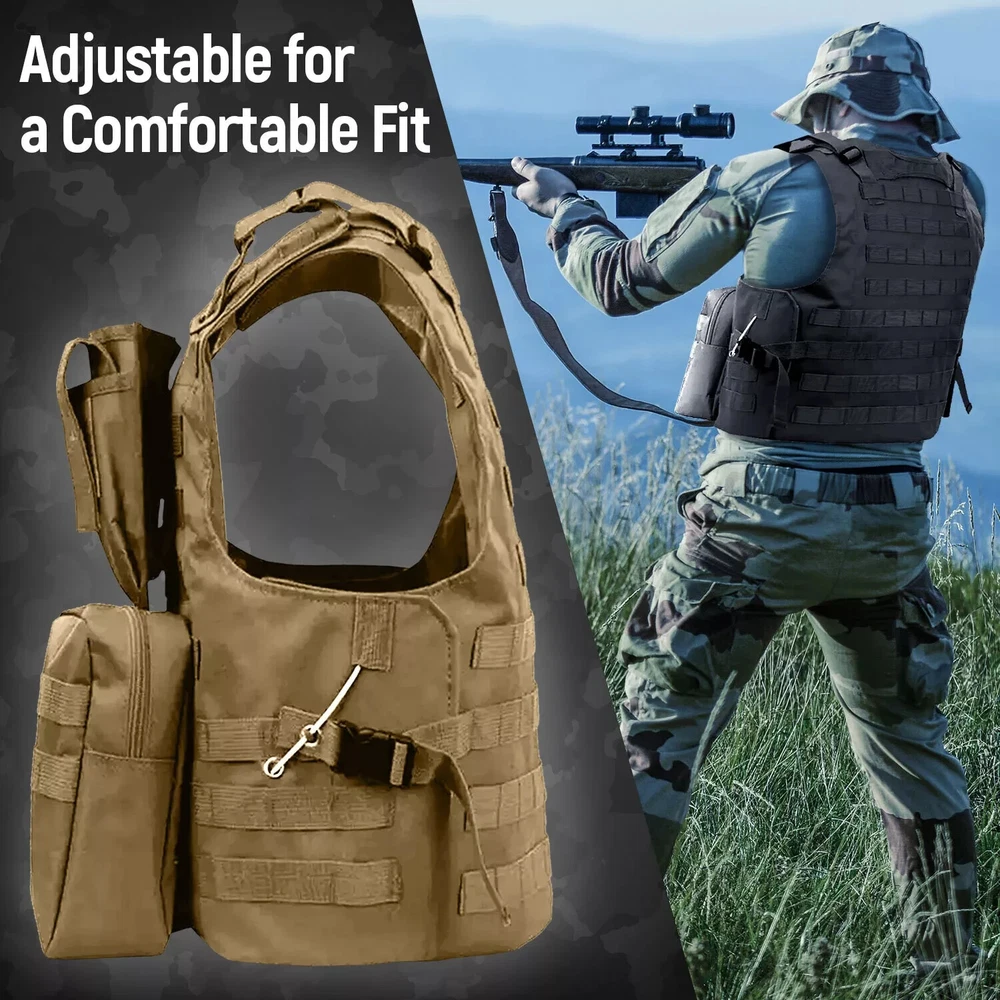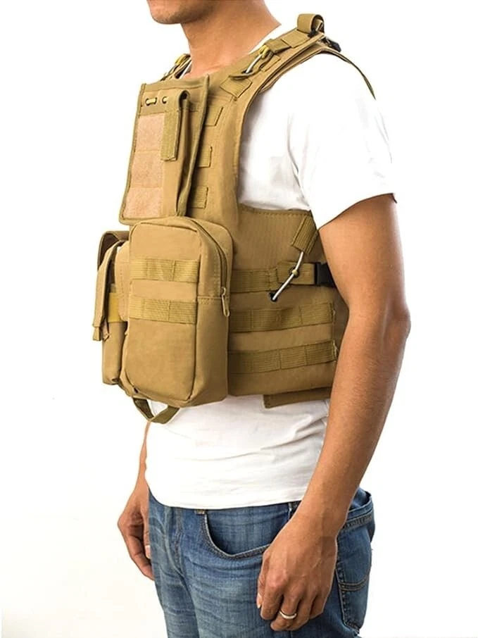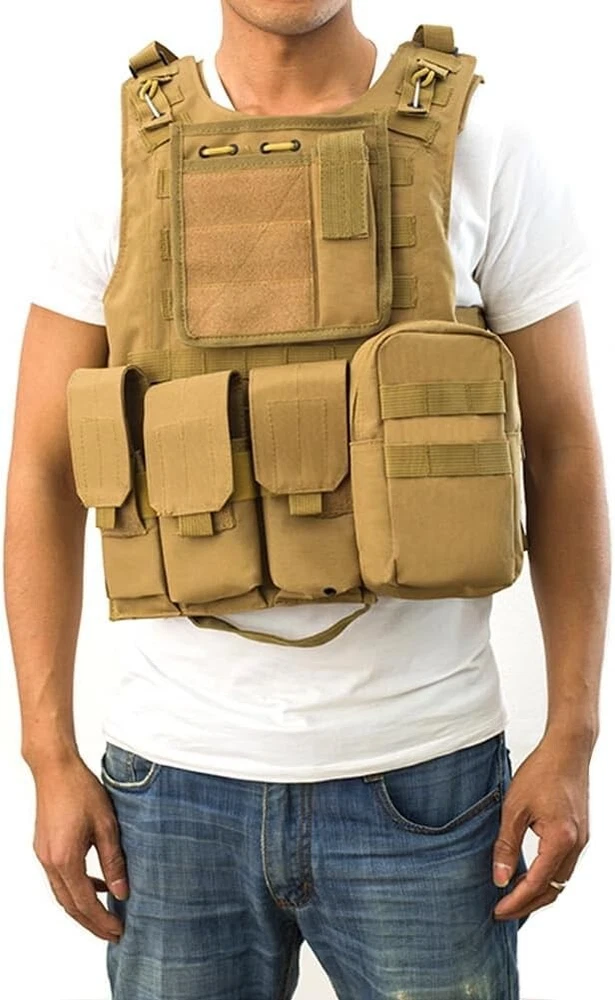 About this item High-quality 600D oxford material, stronger tensile strength and wear resistance, comfortable and durable. Fully loaded combat molle systems / Only for paintball game, airsoft game, outdoor game or Cosplay Vecro patch can be attached on the vest / The color of the photo and real product may have little color different Quick release buckle for wearing / Full adjustable in size with vecro attachment on two sides and shoulder of the vest body