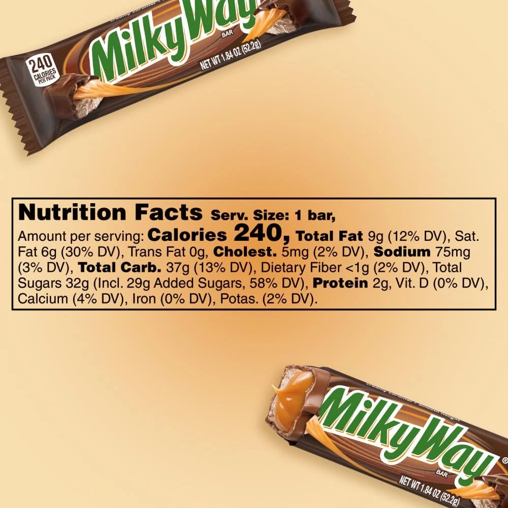 Contains one (1) 36-count box of 1.84-ounce MILKY WAY Milk Chocolate Singles Size Candy Bars Item ships with cool packs (Not available on Fresh) These candy bars are great for gift baskets or passing out on Halloween Stock the office pantry with 36 individually wrapped, full-size MILKY WAY Milk Chocolate Bars Full-size MILKY WAY Candy Bars are great for keeping in your desk to brighten your afternoon