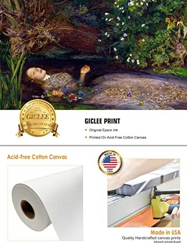 Return Policy Fast Delivery Trusted seller - Ophelia by John Everett Millai. Oil Painting Reproduction, Giclee Print on Canvas. Ready to Hang Wall Art for Home, Bedroom, Office Decor. 30x20 Product Description MADE IN USA. Canvas Print Size: W 20 x H 30 in, Strengthened Depth: 1-1/2" (Gallery Wrap: This type of canvas can be hung directly on the wall.) Shakespearean Elegance in Art: This exquisite print of John Everett Millais' "Ophelia" captures the tragic Shakespearean heroine, surrounded by floral elements that echo the original description of Ophelia's garland in the play. The inclusion of the red poppy, a symbol of sleep and death, adds a layer of depth and interpretation to the artwork. High-Quality Giclee Prints: Printed with archival inks on acid-free cotton canvas, our artwork features vibrant colors, intricate details, and lasting durability. Eco-friendly and perfect for enhancing your space. Please note that actual colors may vary due to monitor differences. Enhanced Durability and Quality: Crafted with acid-free cotton canvas, our artwork is designed to resist the effects of light, heat, and humidity, contributing to the longevity of the piece. This careful process enhances the texture of the prints and helps maintain the vibrancy of the colors over time. Each canvas panel is meticulously sealed in a protective carton box with corrugated or air column corner wraps to ensure safe delivery in pristine condition. Additionally, we provide complimentary professional picture hanging tools, including gloves, nails, and a level, for easy installation. Shipping Returns Payment Shipping Shipping is FREE to all addresses other than APO/PO boxes in the lower 48 states. All our stock ships from US-based warehouses. Shipped via USPS or UPS (depending on location and package weight) Unless stated otherwise, all orders will ship within 24-72 hours of your payment being processed. Check our feedback to see the great reviews of FAST shipping we offer. Returns Seller does not accept returns Payment We currently accept payment via eBay managed payments only. Once payment is cleared, we will dispatch your shipment within 1-3 business days. Please refer to the "Shipping" tab for more information regarding shipping speed to your destination.