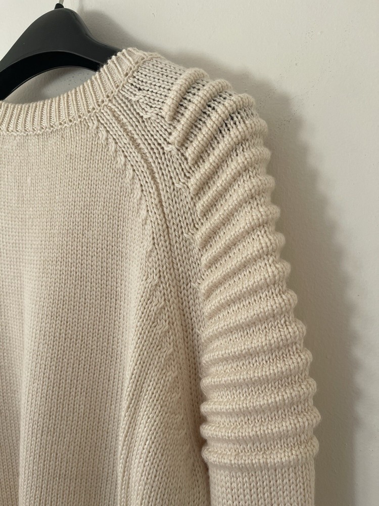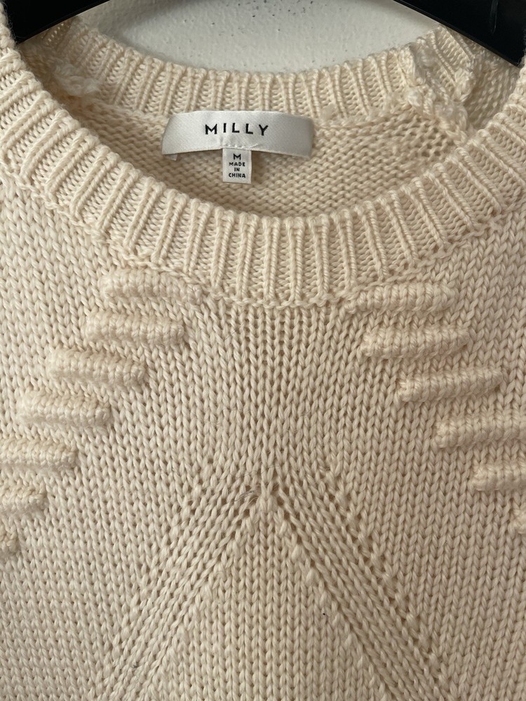 Beautiful Wool Sweater by Milly. Soft Feel. Measures approximately 21" across chest and 26" from shoulder to hem. Oversize fit with elaborate knit detail. Beautiful quality.