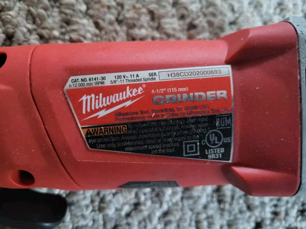 The Milwaukee 6141-30 is a 4-1/2" corded angle grinder designed for industrial use. With a power input of 120V and 11A, this tool is manufactured in the United States under the Milwaukee brand. Its sturdy construction and reliable performance make it ideal for cutting, grinding, and polishing various materials in professional settings. The Milwaukee 6141-30 is a versatile and durable angle grinder trusted by businesses and professionals for its efficiency and quality. Mint Condition No handle or guard included. Same day shipping