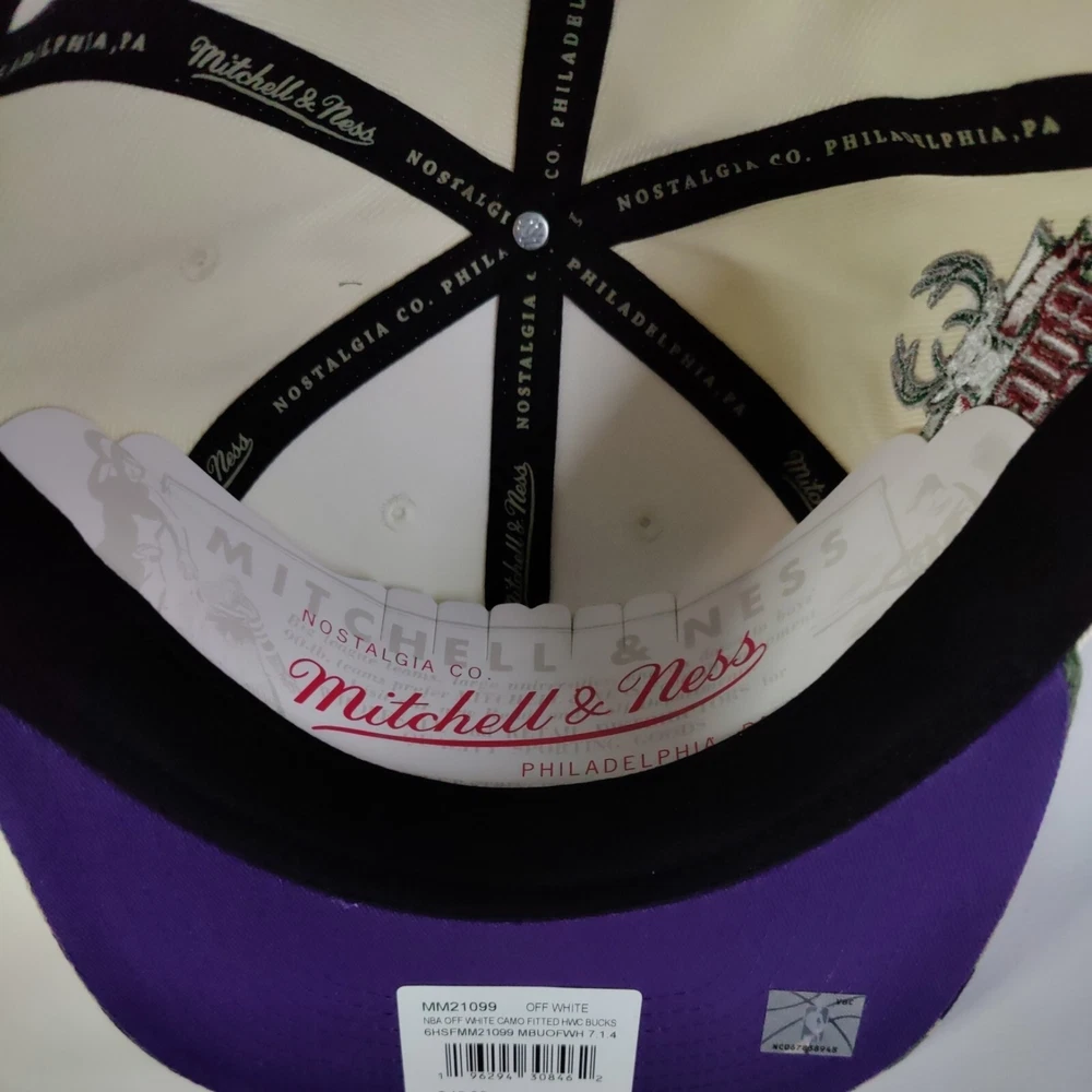 Show your love for the Milwaukee Bucks with this Mitchell & Ness 40th Cream Camo Hardwood Classics Fitted Cap. Perfect for NBA fans, this officially licensed cap features the team's colors and logo on the front. Made for male basketball enthusiasts, this cap comes in a size 7 1/4 and is perfect for any occasion. Crafted by Mitchell & Ness, this cap is made with the highest quality materials and features a unique camo design that is sure to turn heads. Whether you're watching the game at home or showing your support at the arena, this cap is a must-have for any true Milwaukee Bucks fan.