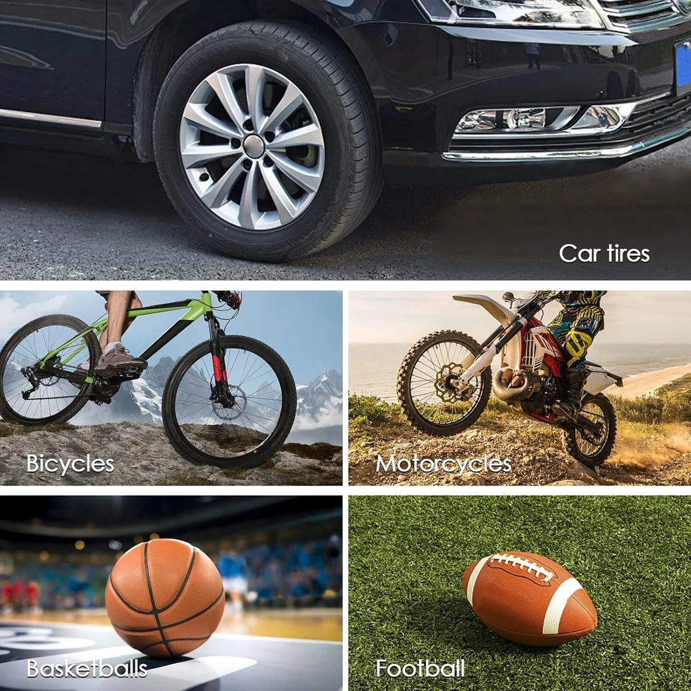 Cordless Tire Inflator Air Compressor Compatible with Milwaukee 18V Battery, 160PSI Portable Handheld Air Pump with Digital Pressure Gauge for Cars Motorcycles Bikes Sport Balls(Tool Only) About this item : Cordless tire inflator: This tire inflator is powered by a battery(Battery and Charger NOT Included), perfect for both home and professional use Automatic Shut Off: Preset the desired pressure level and start inflating job. This car air compressor will shut off automatically at the desired level. There is no need to worry about over inflating, the accuracy of the indicated pressure is +/- 1 PSI Intelligent Display: Easy to read digital gauge provides accurate digital display. LCD screen will display the preset tire pressure value the air compressor will automatically shut off when the value is reached. The unit of air pressure can be switched among bar, kPa and PSI Metal Cylinder & Led Light: This cordless tire inflator is built with metal cylinders and gears. It can continuously work for 20 minutes and compress up to 160 PSI. This efficient compressor can quickly and easily inflate 4 tires. The LED work light allows you to inflate in the dark Durable & Lightweight: This electric tire inflator is made with wear-resistant nylon braided inflatable tube, anti-freeze not break, explosion-proof and high temperature resistant. Cordless design convenience for use almost anywhere Wide Application: This portable tire pump is equipped with the tapered adapter, valve extender, inflation needle, suitable for SUVs, cars, motorcycles, bicycles, sport balls and inflatable pool toys, etc. Note: It's not suitable for large truck tires