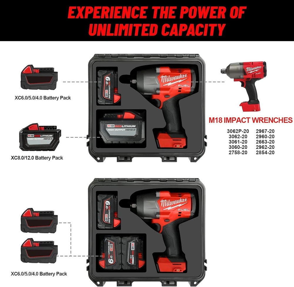 Milwaukee M18 Impact and Torque Wrench Case - Waterproof Hard Tool Box for Milwaukee Set, Power Tool Combo Kit Bag for 18V/20V Cordless Torque Wrenches/Battery (Case Only) Description : ππππππ ππππ: ππππ ππππ. πππ ππππππ ππππππ & πππππππππππ πππ ππππππππ, ππππππ πππ π ππ πππππππππππππ ππππππππ ππππ. [Hard Case for Milwaukee M18 Wrench & Battery] : For Milwaukee tools case is designed for Milwaukee M18 Impact Wrench: 3062-20,3061-20,3060-20,2758-20,2967-20,2960-20,2663-20,2962-20,2854-20,2855-20,2855P-20,2766-20,2767-20,2666-20,2666-21B,2659-20,2658-20,2759-20,2759B-20,2863-20,2862-20,2864-20,2962P-20; XC12.0/10.0/8.0/6.0/5.0/4.0/3.0/2.0/1.5 Battery Pack [Precision Custom Interior Design for Milwaukee M18 Wrench]: The case features a custom interior tailored specifically for Milwaukee impact wrench, batteries. Details determine quality, and customized lining provides the perfect protection for your items. Unique customization, changing the inner charm of the box and showcasing individual taste. [Sturdy Carrying Design for Milwaukee M18]: This hard case is designed with a durable and secure lock latch system, ensuring safely for Milwaukee tools. The comfortable and stable handle makes it convenient to carry your tools to job sites. [Versatile Application Case]: Whether you're a professional contractor, electrician, or a DIY enthusiast, this hard case is designed to meet your needs. It's ideal for transporting and storing for Milwaukee wrench, batteries on busy job sites, in workshops, or during home renovation projects. The case's durable construction and secure lock latch make it perfect for protecting your tools during travel, ensuring they are ready for use in any setting. [High-Quality Material Case for Milwaukee]: Constructed from durable polypropylene, this hard case offers excellent protection against impacts, dust, and moisture. The rugged PP material ensures for Milwaukee tools remain safe and secure, providing long-lasting performance in any environment. [Large capacity for Milwaukee]: Case is your perfect storage solution! The carefully designed box provides spacious interior space that can accommodate various M18 wrench, batteries. Its sturdy and durable material ensures the safety of your items, whether in harsh rain, muddy construction sites, or during travel. This case will bring a relaxed and convenient experience to your life! [Quality Service]: You Can Get: 1x Tool Battery Waterproof Hard Case. Our Worry-free 12-month Warranty / Refund and Friendly Customer Service; It's Completely Risk-Free Purchase, If you have any questions, please feel free to contact us.οΌCase Only)