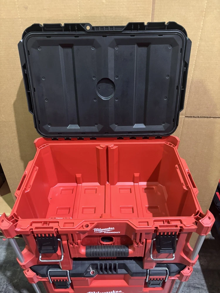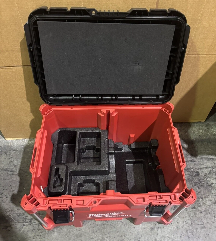 MPN: 48-22-8426 gtin13: 0045242505357 Item Weight: 23.4 lb Color: Red, Black UPC: 0045242505357 Features: Deep Chest, Lockable Item Height: 25.6 in Material: Resin Type: Tool Box Finish: Matte Item Width: 22.1 in Capacity: 250 lb Model: Milwaukee PACKOUT Size: XL Item Length: 18.6 in Brand: Milwaukee Number of Items: 1