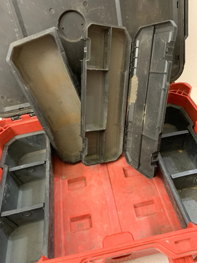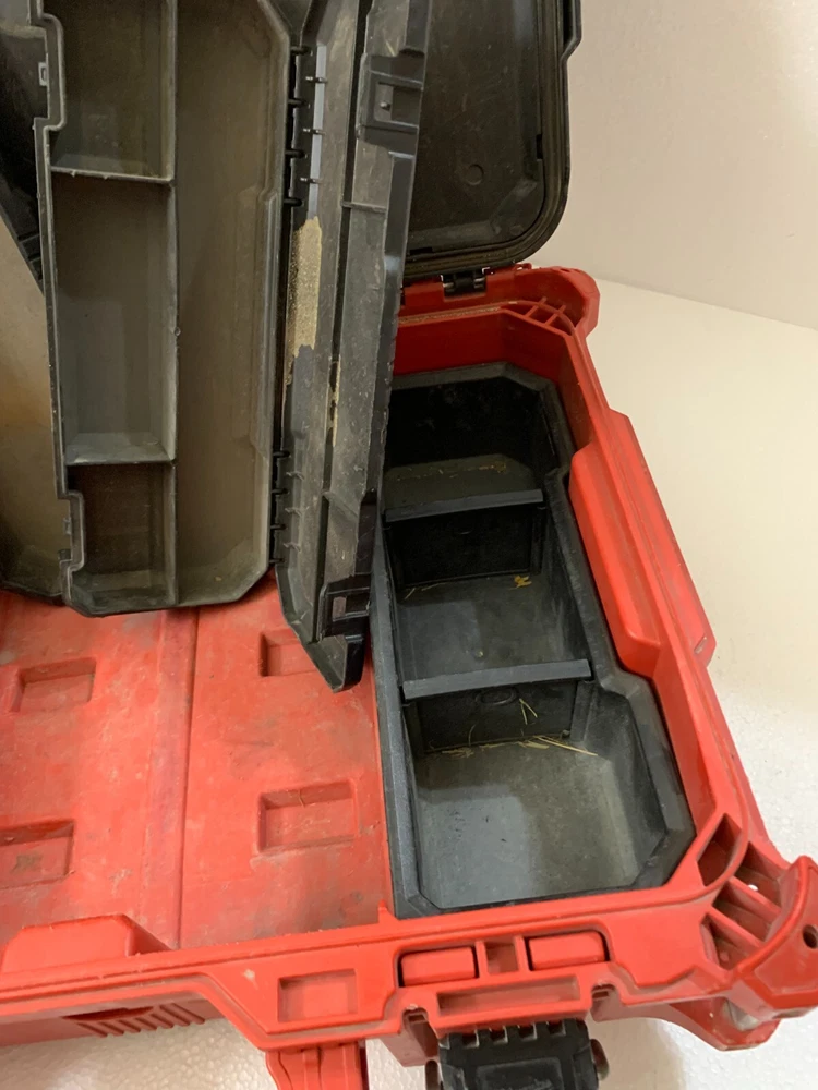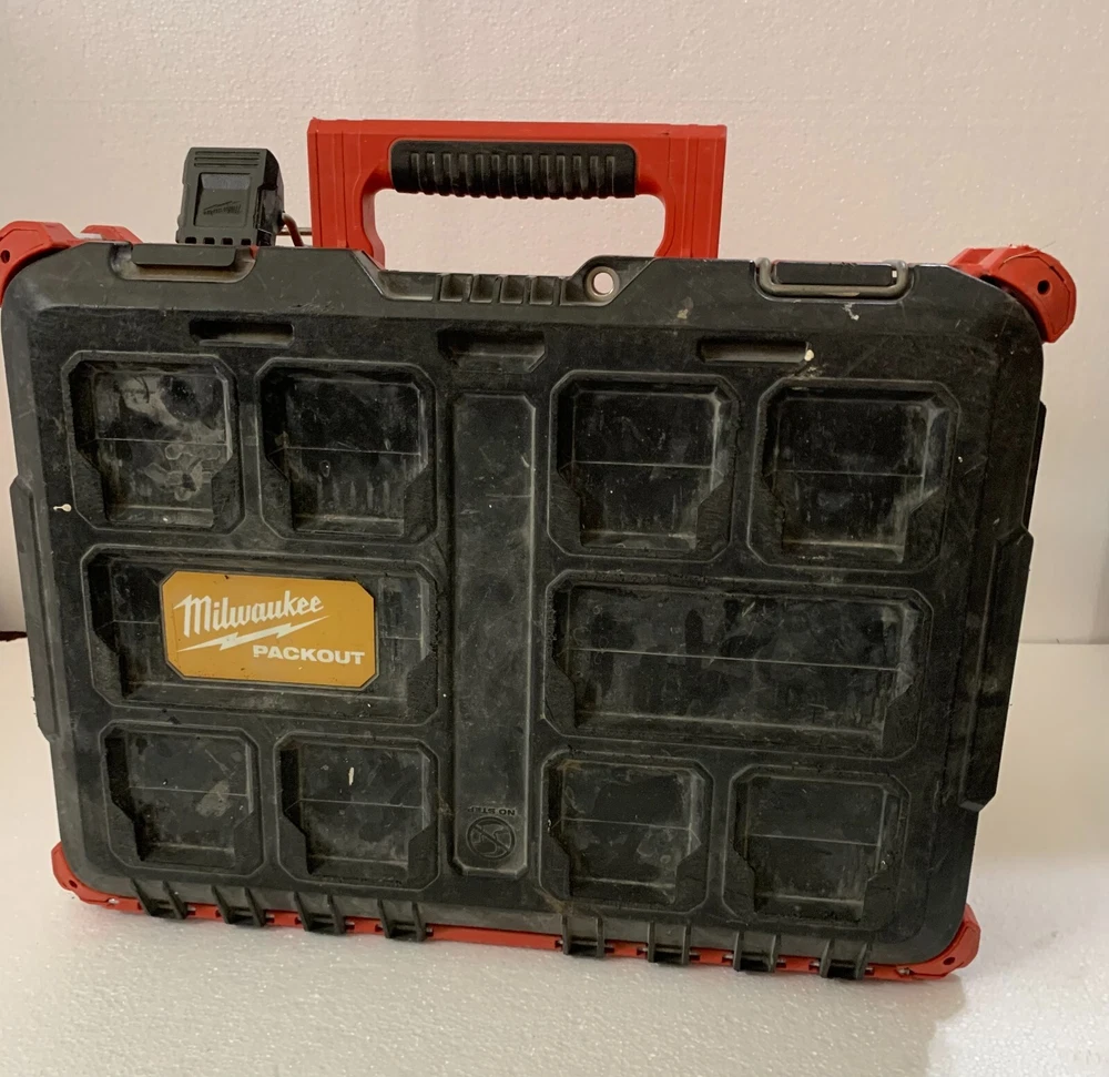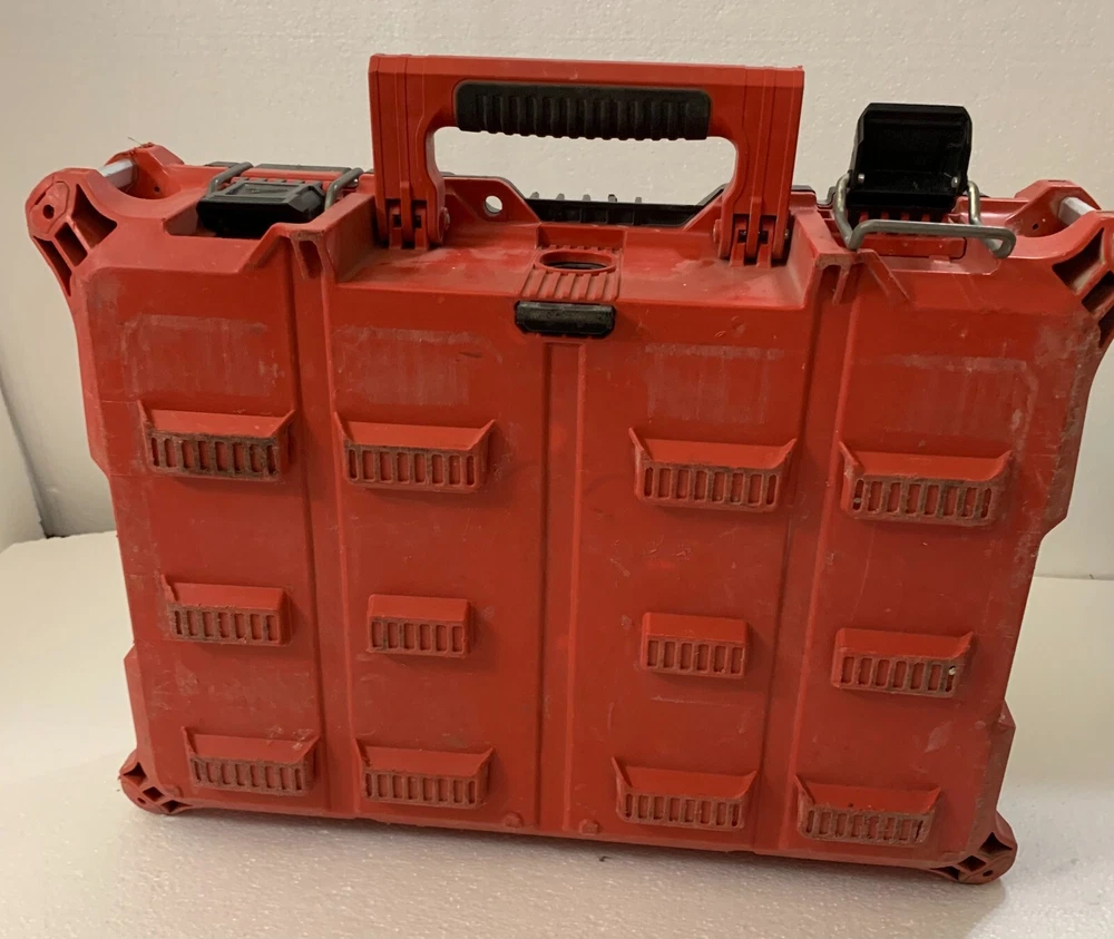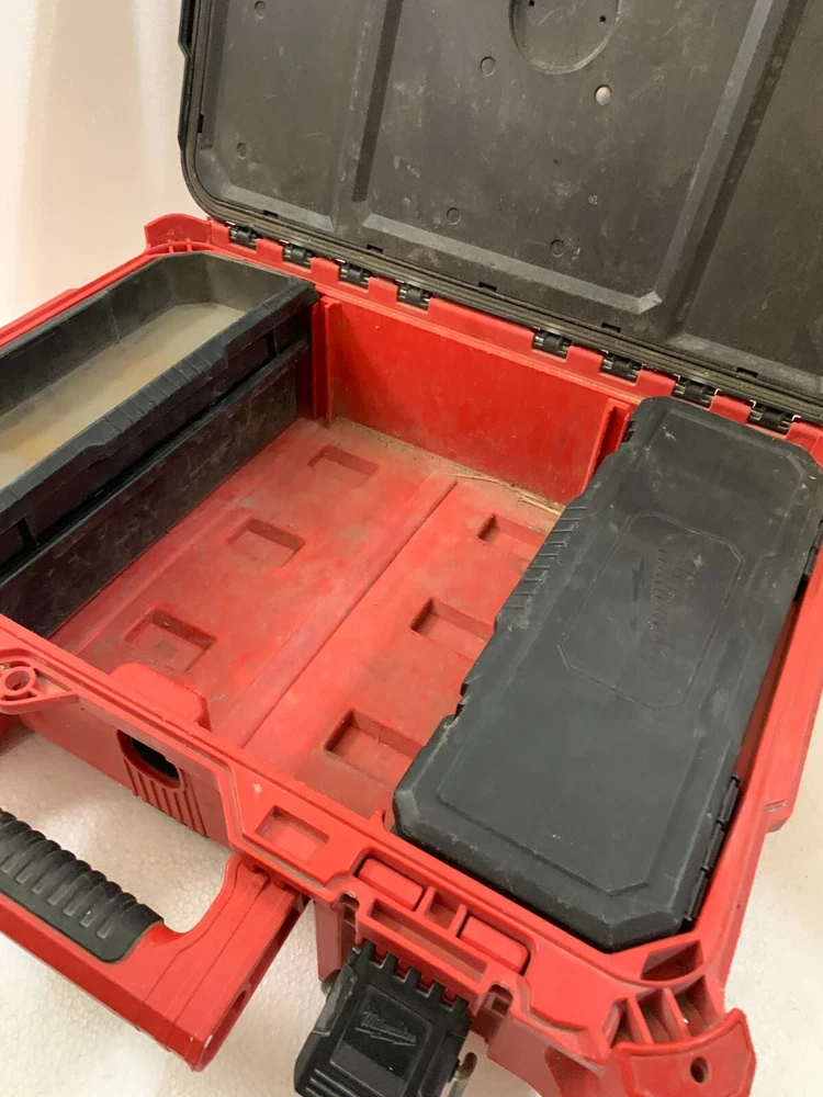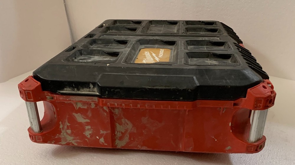 Item Weight: 11# Number of Drawers: 1 Brand: Milwaukee Type: Tool Box Item Height: 6.5" Number of Items: 5 Item Length: 22" Color: Red Features: Adjustable Item Width: 16" Model: GRAPHITE 58G015 Size: Medium Capacity: 50 lb Seller Notes: “bumps and bruises, but solid” Country/Region of Manufacture: United States Finish: Matte
