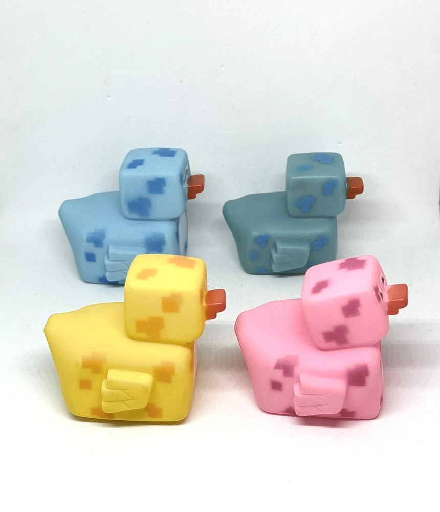 Minecraft Rubber Ducks Pixelated Bath Pool Jeep Toy Set of 4. Note: the pink duck has lost some air and has wear;shown in photos! Items have marks/scratches; shown in photos! Thank you for stopping by!