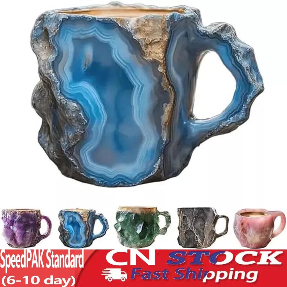 Mineral Crystal Coffee Cup 400ml Resin Crystal Mugs Agate Crystal Decorative Cup
