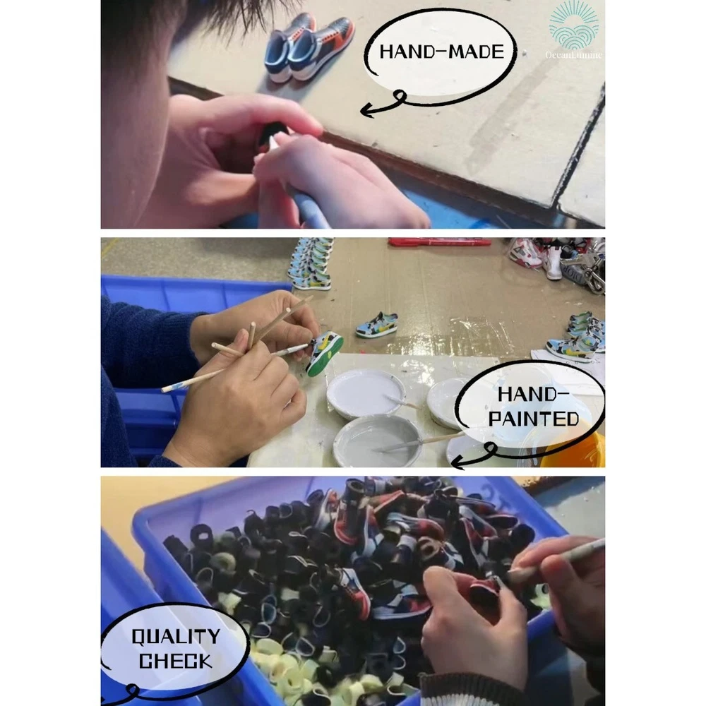 All Shoe keychain size is about Free eBay listing template designed by dewiso.com PLEASE READ BEFORE YOU PURCHASE Handcrafted and hand-painted 3D Mini Sneaker Keychains inspired some of the most coveted sneakers ever produced Materials as ABS Plastic (Soft Plastic) All Shoe keychain size is about 2 1/2 (L) x 1" (W) x 2" (H) The shoe Tongue is movable, it is not cracked or broken. Random shoe box styles will be given, if you have a preference please get in touch with me. These are all handmade and hand-painted with better paint, if you want to find a lower price please seek lower quality, my key chains have better quality and the price is firm on eBay. We've been selling these key chains for 3+ years, and have the most styles and best quality with super fast shipping. Search OCEANLUMINE on any search engine to visit us! CLICK ME FOR MORE STYLES Disclaimer Product packaging, specifications, and prices are subject to change without notice. All information about the products is provided for information purposes only. Please always read labels, warnings, and directions provided with the product before use. Shipping We will ship all orders within 2 business days of payment, we provide free upgrade USPS shipping service up to 2-DAY Priority if Urgent Contact We can be contacted at any time through eBay messages if you have any questions, comments or product requests. We will respond to you within 24 hours and do our best to help you out! Features and further details 3000+ keychains in stock with up to 400+ styles We do bulk orders with discounts and provide long-term business relationships More styles are available in my shop PP WORLD