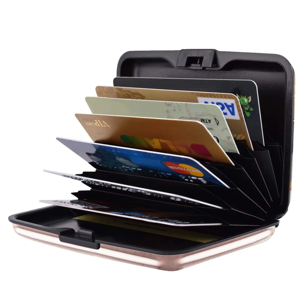Description ★★★One Mini Case, 7 card Slots, Big Safe house, Not Just the Embellishment;★★★ Product Information 1. Product Name: Women Card case / Credit Card Holder / Business card holder/ID card holder/Mini Wallet for Women 2. Product Color: As the Picture Shown 3. Subject Targets: Women&Girls 4. Product Material: Aluminum materials and Environmentally friendly plastic(ABS) from top manufacturer 5. Applicable Occasion: Travel, exercise Casual,weekend hiking,outing,shopping,Daily Use etc. ▸Why You Will Choose the Credit Card Holder?◂ 1. [Safe and Secure] :Our card case wallet can perfectly block unwanted RFID scanners. 2. [Unique Pattern Design] :Aluminum case with unique pattern design,makes you look fashionable and attractive. 3. [Wallet Case Design] : 7 card accordion slots, capacity for up to more than 10 credit cards or 20-30 business cards(It depends on the thickness of your business card); 4. [Good Touch Feel] : Coated protective oil makes surface glossy, super good touch feel. Scratch-resistant and anti-fingerprint. 5. [Slim Style Design] : Say bye-bye to big bulky wallet,convenience carrying with ultra slim and minimalist size; 6. [Humanized Design] : Easy to take card out, compatible best gift for friends and family,diversified choices by advanced materials and various pattern,Ideal gift choice, luxury style with contrast color matching design; ▸Package Includes◂ 1. 1x Women Credit Card Holder Only 2. Please Note: Accessories ONLY, Card not included Commen Questions: Q1. Is this made of aluminum or plastic? The credit card holder case outside is aluminum, inside is plastic.; Q2. Will it hold a drivers license? Yes it will hold a drivers license and credit cards; 【Safe and Protected Card Wallet】:The rose gold credit card holder can perfectly block unwanted RFID scanners, safe and secure rfid blocking signals and protects the valuable private information. 【Slim Credit Card Holder】:The hard card holder compact size of 4.3 x 3 x 0.8 inches. Made of high quality aluminum materials and Environmentally friendly plastic(ABS) from top manufacturer. Fits various types of cards: id card, credit card, business card, driver's licenses, medical cards, etc. 【Mini Credit Card Organizer】: Easy to open and close. Latches safely and securely when not in use. With 7 accordion Slots,capacity for up to more than 10 credit cards. Allows you to bring it along in your handbag, backpack, pocket or purse.The best choice for traveling,outing, dating, even exercising. It is a must have when on vacations or traveling overseas, keep the worry away and be protected all the time. 【Original Pattern Design】: Modern and fashionable design,the pattern is unique,this sunflower card case is the perfect accessory for clothes and bags and you won't find any one that is the same,the fine print will not fade. Perfect gift for women, lady, girls or anyone who loves it; Suitable for Valentine's day, birthday, graduation,Mother's day, Christmas and other holiday gifts. 【Service for Credit Card Holder】: We are committed to creating exquisite services, any questions, please contact our customer service, we will solve the problem for you in 24 hours.If your card holder don’t perform to your satisfaction, return it to us within 180 DAYS with proof of purchase for a hassle-free refund, exchange, or replacement.