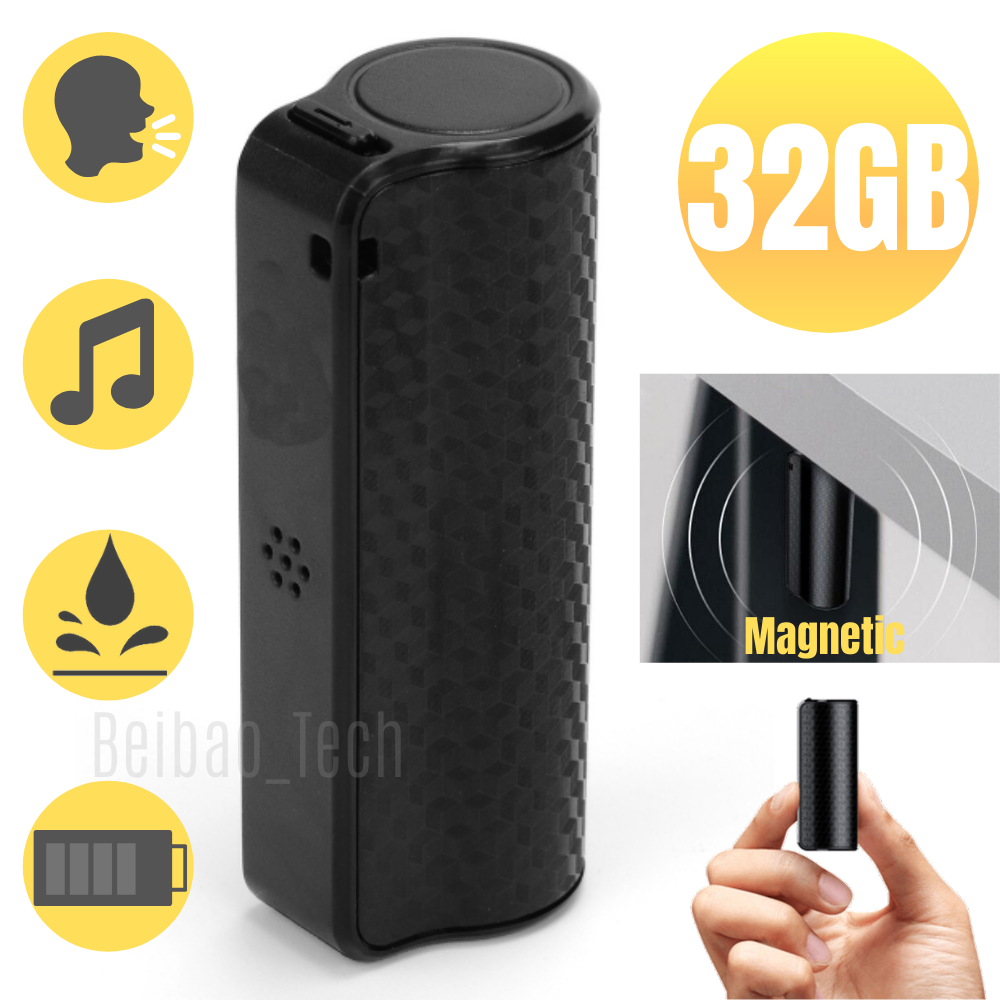 Strong MagneticUS StockDictaphoneMp3 Player Note: This digital voice recorder has more functions, like MP3 player, A-B repeat,one-button recording, HQ recording, Automatic Save, Time Setting. The voice recorder will start recording when a sound is detected and will stop when the sound is ended. When there are no sounds, the recorder will just go in sleep mode saving memory and battery at the same time. Noise can be reduced by intelligent PCM, condenser microphone providing you with a truly full clear and natural sound. Descriptions: LONG DISTANCE RECORDING & STRONG MAGNETIC: Voice recorder with powerful reliable and sturdy magnet can be used anywhere you can imagine, easily installed in the home, meeting room, classroom, etc.USB digital recorder has high sensitivity, can easily accessible record sounds max up to 40M, no worry if you are sitting any corner of your lecture hall or meeting room, getting clear voice and making the recording easily. NOISE REDUCTION: This digital voice recorder features de-noising technology, which can offer a more natural sound and allows 40m long-distance recording without damaging the audio quality. ONE BUTTON OPERATION: Simply click the Rec button to record and the Play button to playback. Never miss an important moment. LOOP RECORDING: when the recording data is full of memory, it will automatically delete the first recording data and continue to loop recording. After continue recording 5 hours, the recorder will save the recording file automatically then move on to the next recording. EXTRA-LONG BATTERY LIFE: The rechargeable Li-polymer battery guarantees 40 days of recording on one charge, ensuring your recorder will always be ready to work. AUTOMATIC SAVE WHEN LOW POWER: When the battery is too low during recording, it will automatically save the file being recorded to prevent it from being lost due to insufficient battery power. Specification: Type: Spy Digital Voice Recorder Color: black Body material: ABS non-slip texture Recording time: 40 days of continuous recording Recording method: one-button recording Distance:40 M Microphone: Built-in HD microphone Product weight: about 15g Battery: 2500mAh lithium battery Max. Recording Time: 2000 hours Charging Time: 8hours Dimension:65 mm x 25 mm x12mm Using time: 40 days continuously Built-in memory: 16GB/32GB Recording bit rate:192 Kbps Record format: WAV What's in the box? 1 x Voice Recorder 1 x USB Cable 1 x User manual Powered by SoldEazy
