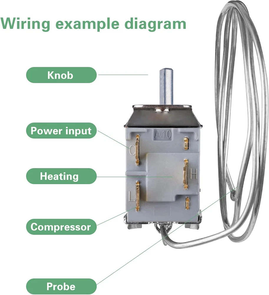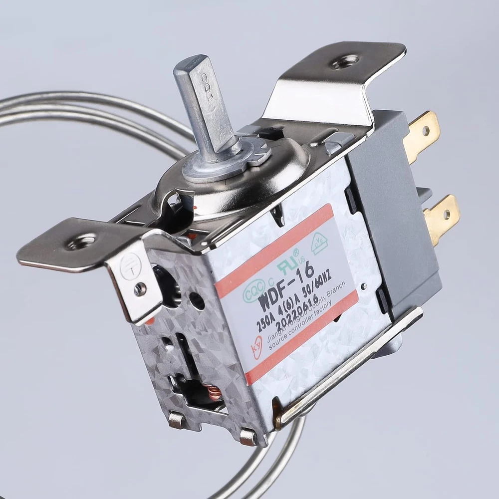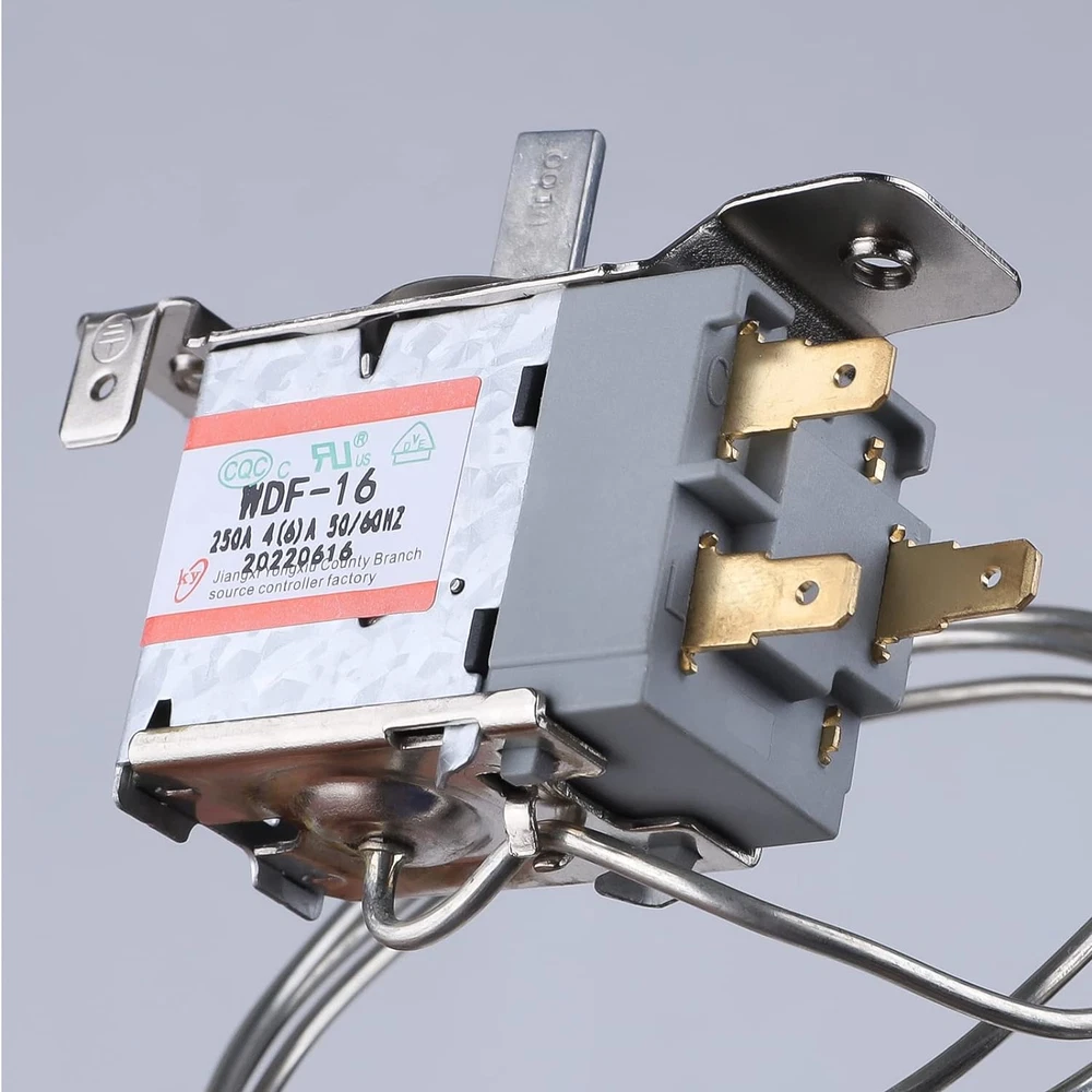 The Mini Fridge Thermostat 3 Pin WDF-16,Compatible with a variety of different brands of refrigerators, as long as they are installed the same way. When your refrigerator is broken due to the bridge thermostat controller, after replacing the WDF-16,it will solve the problem that the compressor does not stop automatically and the refrigerator is severely frozen. FRIDGE THERMOSTAT CONTROLLER WIDELY APPLICATION:Control the temperature of fridge, freezer, display cabinet, congealer, beverage cooler and similar product. 3 Pin Thermostat Controller Compatible with WDF-18, WDF-20(250V replaceable 110V 4(6)A 50/60Hz,Obtained three quality certifications,Reliable quality, same price, better choice. Product Description
