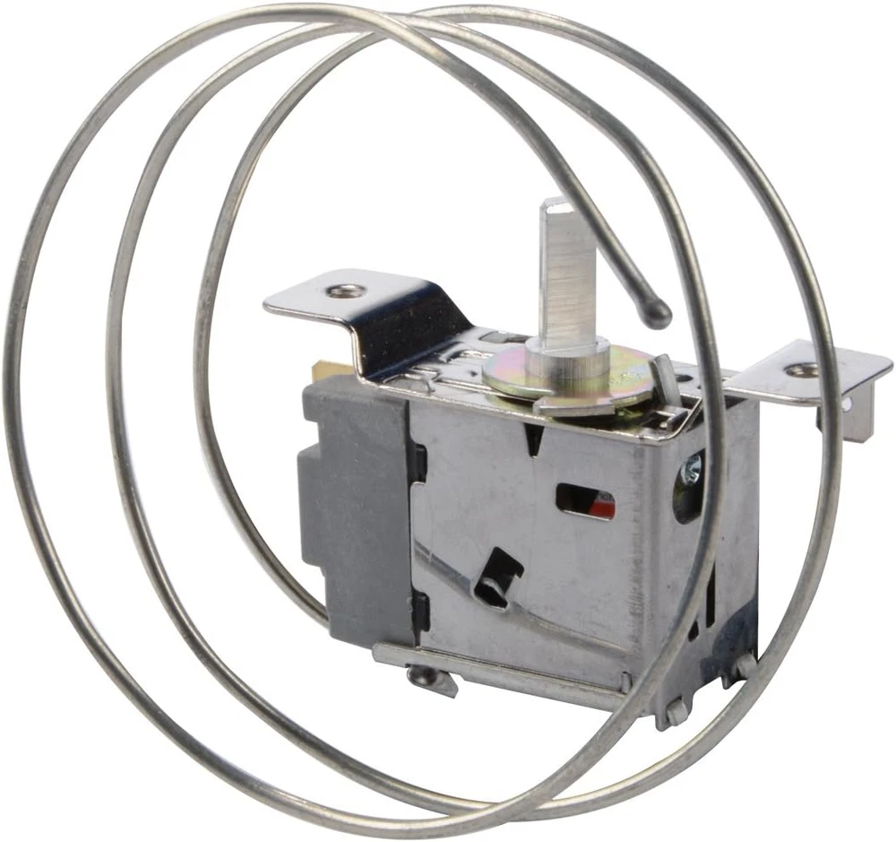Product Name : Refrigerator Thermostat;Voltage Rating : AC 220V-250V 6A;Model : WPF-20 Adjustable Temperature Range: 26.5°F to -4°F(-3°C to -20°C);Warm In : +12.5 Celsius Degree;Cold In : +5 Celsius Degree;Cold Out : +1.5 Celsius Degree Terminals: 2 Pins;Capillary : 1200mm;Size(Approx.) : 68 x 56 x 26mm/ 2.7" x 2.2" x 1" (L*W*H) Cord Length(Approx.) : 65cm/ 25.6";Main Material : Metal, Plastic;Color : Silver Tone Net Weight : 60g;Package : 1 x Refrigerator Thermostat Product Description