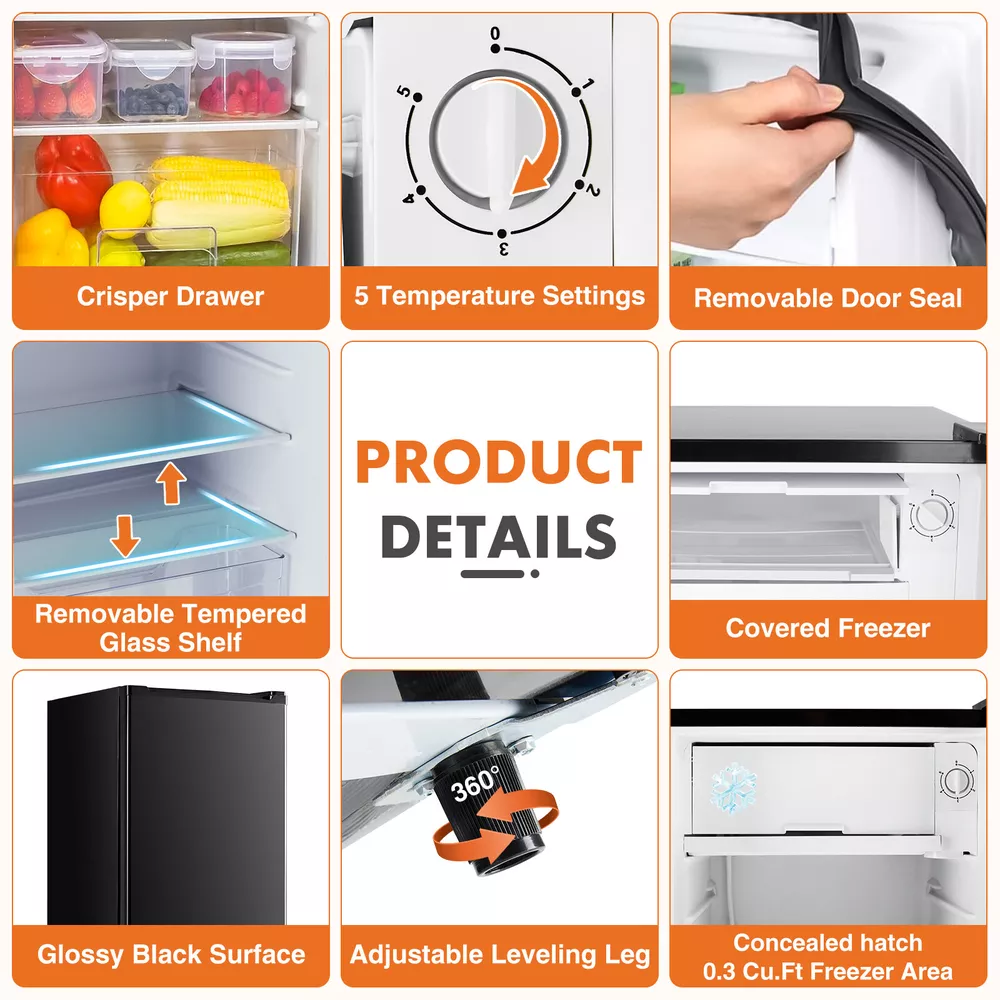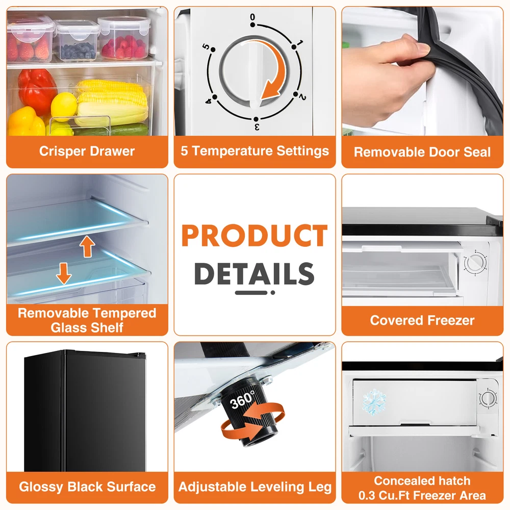 Mini Fridge with Freezer Small Refrigerator Adjustable Thermostat Low Noise