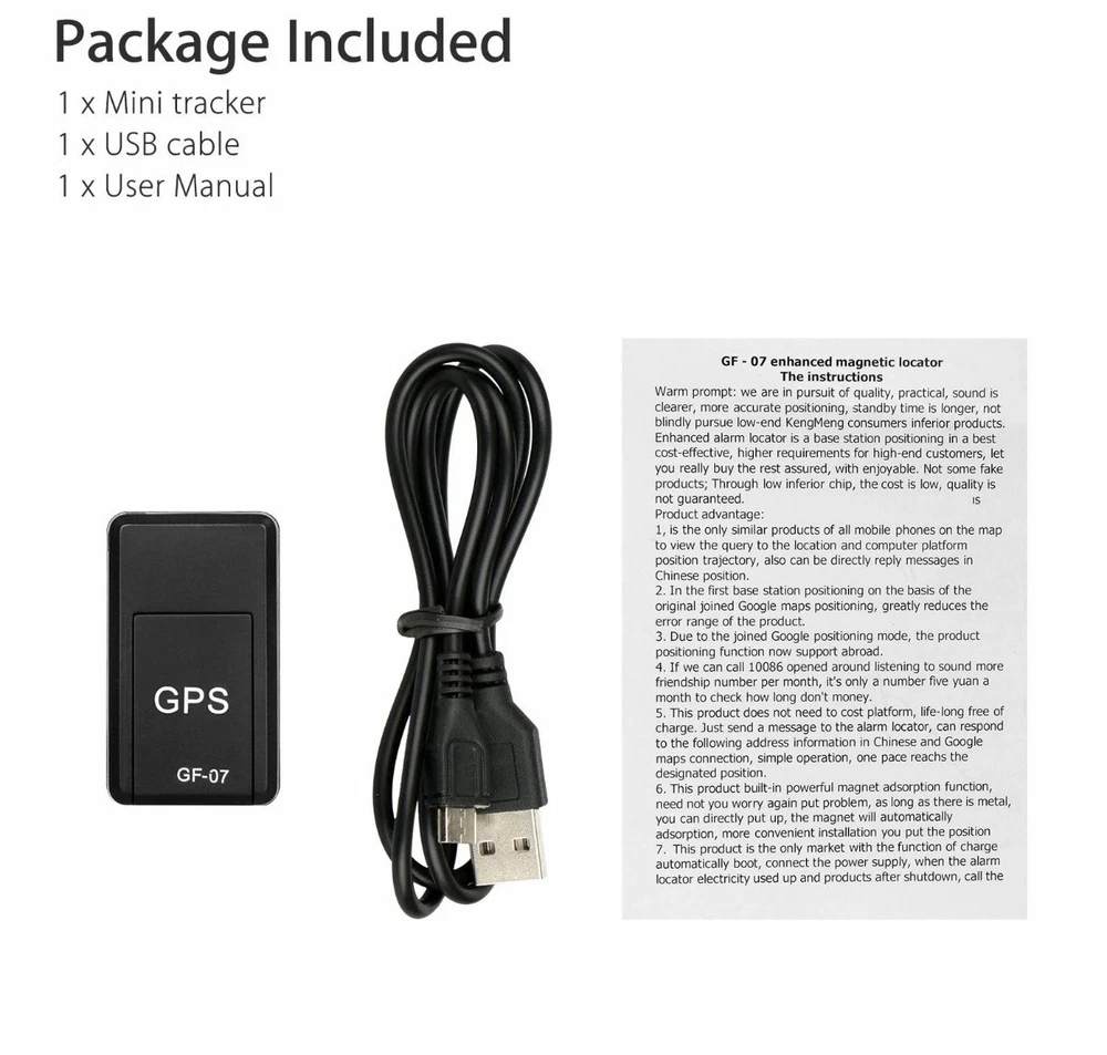 Features: Small size and light weight, easy for carry. Easy to hide, black shell perfect for tracking vehicles, teens, spouses, elderly persons or assets. Easy to attach to vehicle with two powerful magnets inside, no extra installation need. Easy to use. You need one working SIM card (NOT included in our package!) to insert into the device, then you can track and map (with Google Maps) in real-time over the Internet. Dial SIM card number, then you can hear voice around this tracker, with no light and no noise, you can monitoring and spy what's going on around tracker silently and secretly. Carrier's frequency band: GSM 850/900/1800/1900Mhz Note: GPS tracking can be worked outdoor. Must have mobile phone gsm signal and have a GPS signal, It can block GPS satellite signal when there are metal or building above the GPS tracker. Please make sure GSM 2g SIM card or 4g and 3G compatibility 2G GSM network sim card, supports making calls, sending messages, GPRS network. have money.