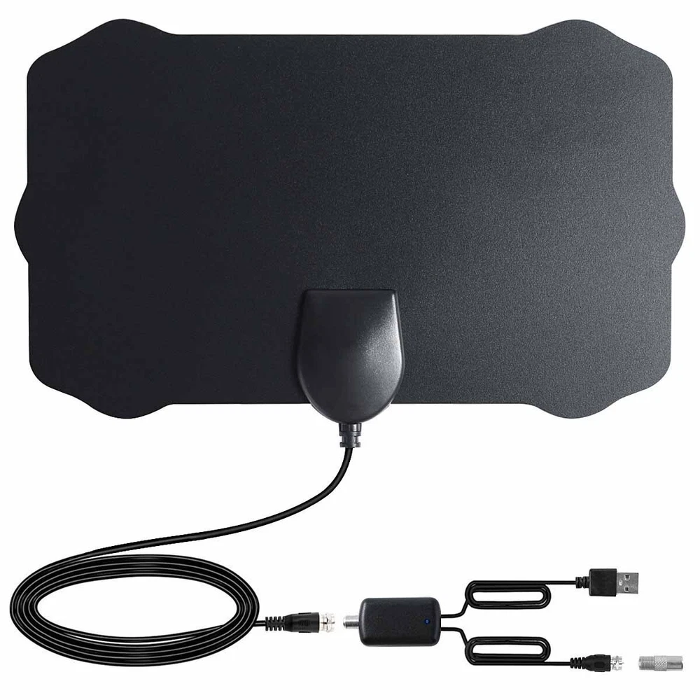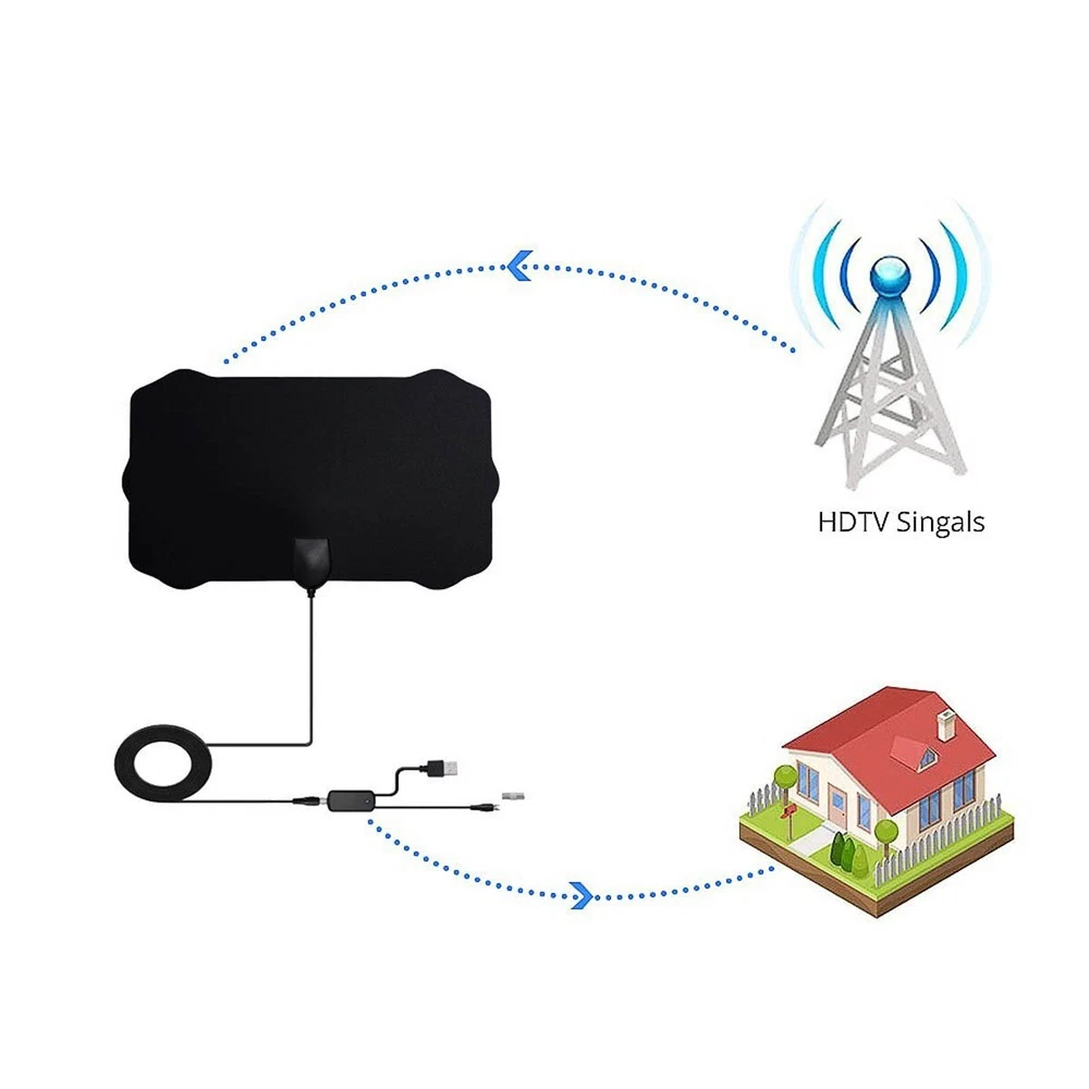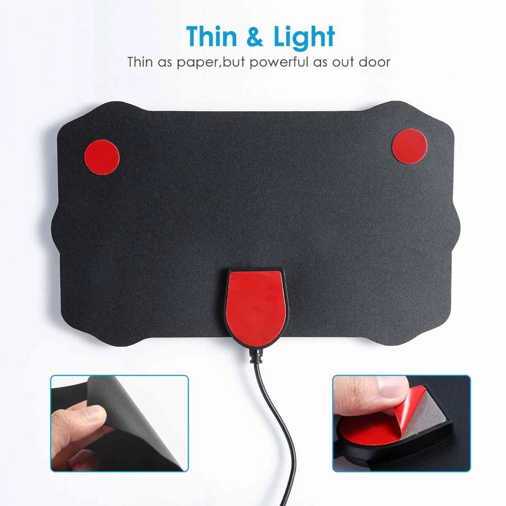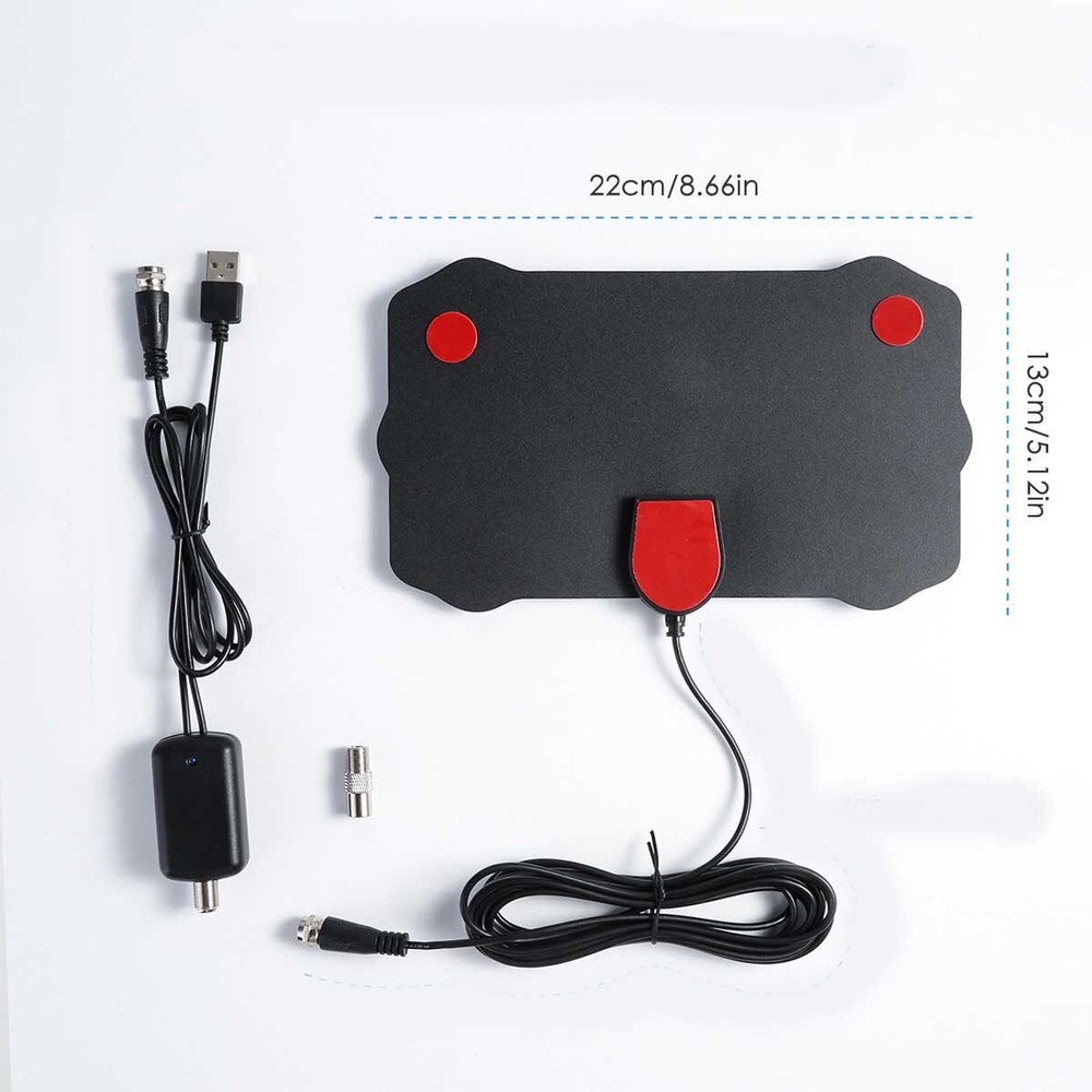 Hello! Welcome to nyplatform ! Fashion design,100% Brand New,high quality! Quality is the first with best service. customers all are our friends. Great HDTV indoor antenna! You will be amazed at the performance! This antenna gives you crispy clear HDTV 1080p 4K picture and a lot more channels. It takes only few minutes to start watching HD channels! This antenna works up to 5600 miles away from the station!!! It is flat, comes with stickers to hang it and doesn't take up a lot of room and does not falling down. It pulls in a lot of channels with great reception.?For example, the HD channels are usually better than the Sky HD. Extremely easy to use: just hit the set up / search channels on your TV and that's it. 1)Support 1080p HD 4K !!! (2)5600miles range !!! (3)Coaxial Cable: 4M length (4)Connector Type:F - head with TV adapter (5)V.S.W.R.:<=1.5,Max:1 (6)Impedance:75Ohm (7) Multi-directional capability (8)call out all "Free" channels (9)Gain:25 dBi(with amplifier) (10) Conventional antenna panels are divided into white, black, transparent, support for samples and drawings to order (11)Working Frequency: 174~240MHz,470~862MHz (12)Product size(MM):220*130*0.65 (13)Mounting Paste (14)Radome Color Black (15). Operation Temperature : -45 ~ 85℃ (16). Storage Temperature : -45 ~ 85℃ Package_Contents Antenna with 9.8FT coaxial cable x1 Signal amplifier +3.3FT cable x1