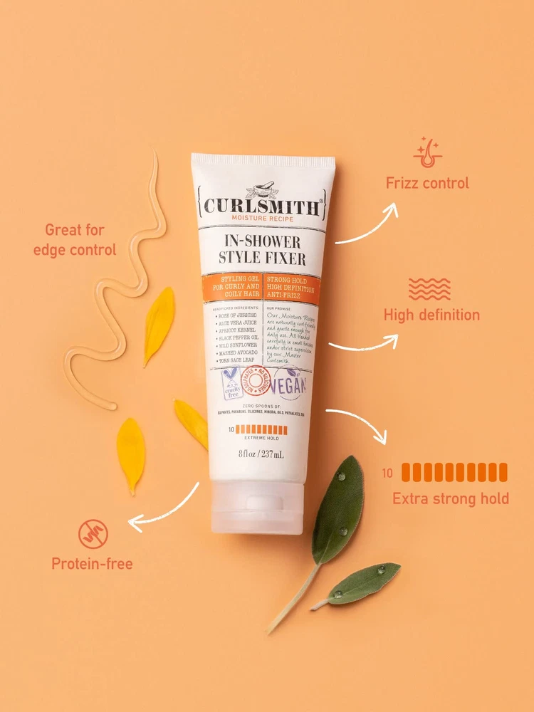 MOISTURE AND EXTREME HOLD - In-Shower Style Fixer tames frizz and flyaways, giving extreme hold and definition - without drying hair. HOW THE HAPPENS - Use on soaking wet hair, right out the shower. Smooth down the length of the hair, using the “praying hands” method. Scrunch gently upwards, then air dry or diffuse. When fully dry, scrunch again to break the cast to be left with soft, bouncy, defined curls. WHAT MAKES US DIFFERENT - Inspired by generations of homemade hair remedies, blends fresh curl-loving foods with kitchen cupboard staples and rare natural ingredients to make premium products that really work. Healthy ingredients, professional results, no compromise. NO NASTIES - All our products have zero spoons of Sulphates, Silicones, Mineral Oils and Phtalates. Plus they're Curly Girl Friendly, they’re 100% Vegan and Cruelty Free. CURL JOURNEY - believes that curls don’t have to be complicated, which is why we’re on a mission to take the guesswork out. We’re here to help you on your curl journey whether you have the loosest of waves to the tightest of coils or anything in between.