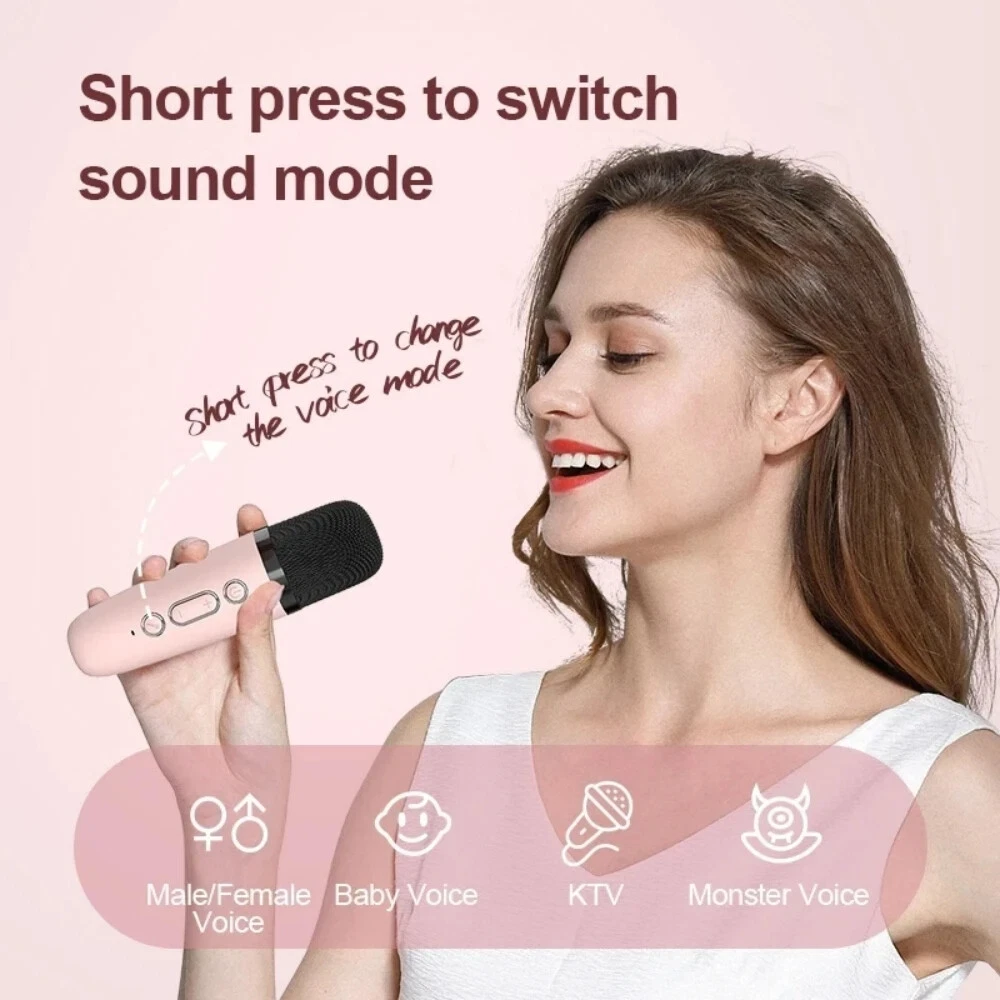 Description\nMicrophone:\nPickup: Backpole condenser microphone\nOperating voltage: 3.7V\nFrequency range: 20HZ-20KHZ\nBattery specification: 1200mAh 1200mAh\nPower adapter DCSV 1000MA (can be used with mobile phone charger)\nCharging time 3.5-4 hours\nSpeaker Specifications\nBluetooth version: 5.0 version\nSpeaker Diameter: 57MM\nTalking power: 6W\nOperating voltage: 3.7V\nFrequency range: 20HZ-20KHZ\nReverb Echo effect\nPower adapter: DC5V 1A (can be used with mobile phone charger)\nBattery specificati Mini Karaoke Machine Portable Speaker With Wireless Microphones For Kids And Description Microphone: Pickup: Backpole condenser microphone Operating voltage: 3.7V Frequency range: 20HZ-20KHZ Battery specification: 1200mAh 1200mAh Power adapter DCSV 1000MA (can be used with mobile phone charger) Charging time 3.5-4 hours Speaker Specifications Bluetooth version: 5.0 version Speaker Diameter: 57MM Talking power: 6W Operating voltage: 3.7V Frequency range: 20HZ-20KHZ Reverb Echo effect Power adapter: DC5V 1A (can be used with mobile phone charger) Battery specification: 2000mAh 2000mAh Charging time: about 2.5 hours