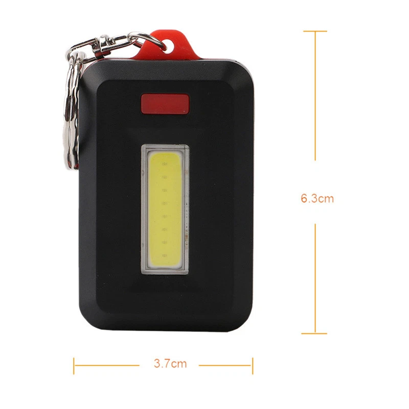 Description: Utra bright COB LED light With magnet on the body,can absorb on metal With climbing hook for sporting High quality ABS cover,come with button battery Compact, waterproof and convenient to use Specifition: Light color: White Material: ABS Color: Random Powered by 3*AAA batteries (not included) Size: approx 3.7cmx6.3cm/1.45"x2.4" Package content: 1 x keychain( battery not included) Note: Due to the hand measurement, there have size error about 1-2 cm.Item color displayed in photos may be showing slightly differenterent Preview: