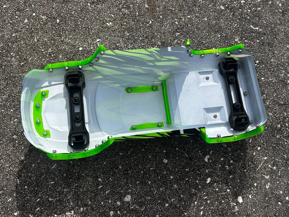 Traxxas Mini Maxx Hood Skid, Roof Skid, Roll Bars and Rear Skid Part Number: MS1640 Add these to your truck for a customizable look and increased durability! Designed to protect the body from roll overs and nasty landings. All required hardware is included. Colors Available: Black, Red, Blue, Green, Orange, White Compatible With: Stock Mini Maxx Body Check out the rest of my shop to find more R/C related products! Made with top quality material that will last through your hardest bash sessions! Made in the USA!