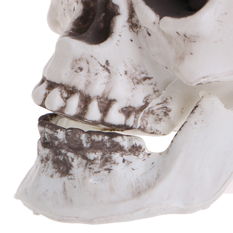 brand new and high quality Item description: human skull Material: plastic Color: as shown in figure Occasions : bars, coffee bars, haunted houses, secret rooms, schools, set props and so on Size:11*8.5*8cm/4.33"*3.35"*3.15" Quantity:1Pc