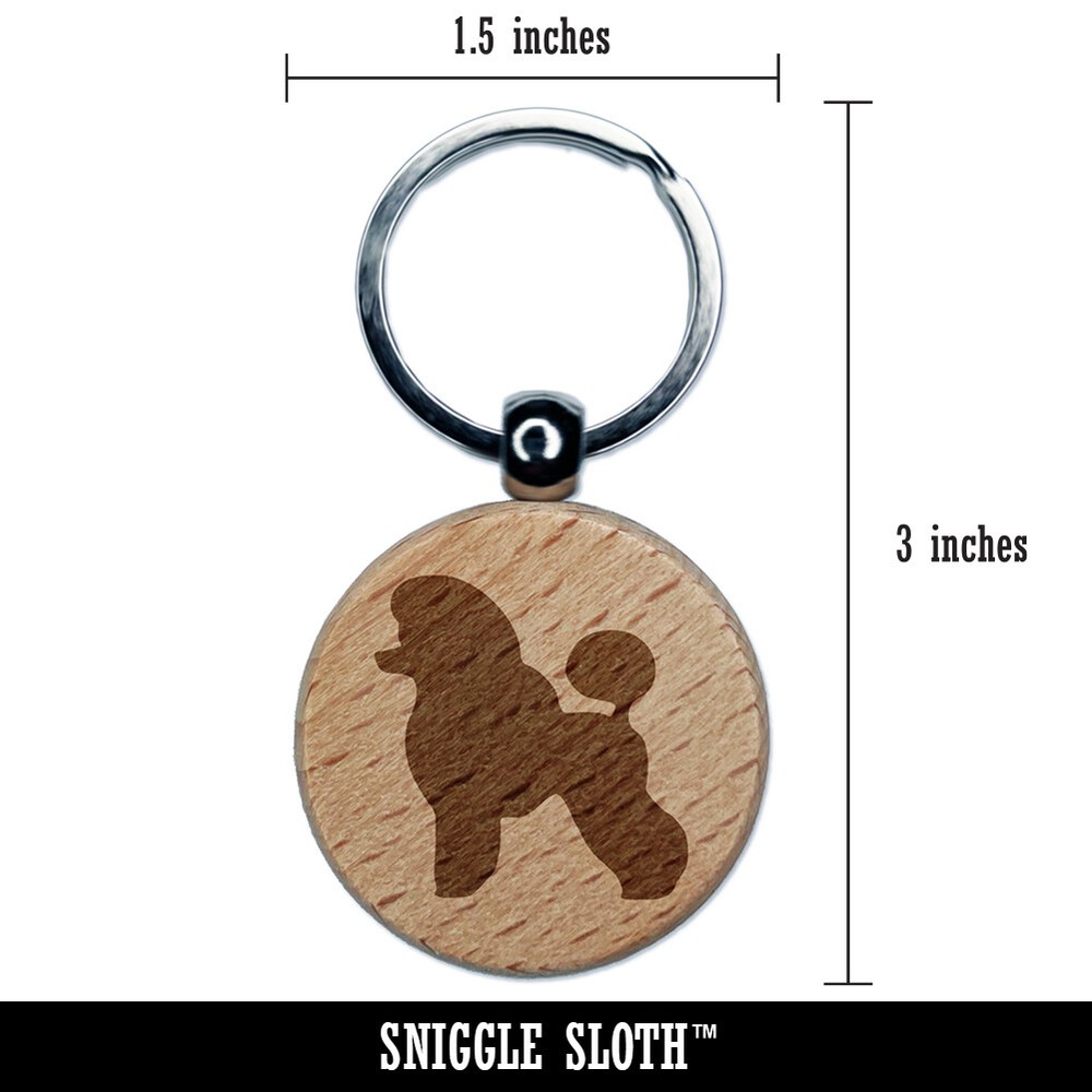 Mini Poodle Dog Engraved Wood Round Keychain Pet ID Tag Charm