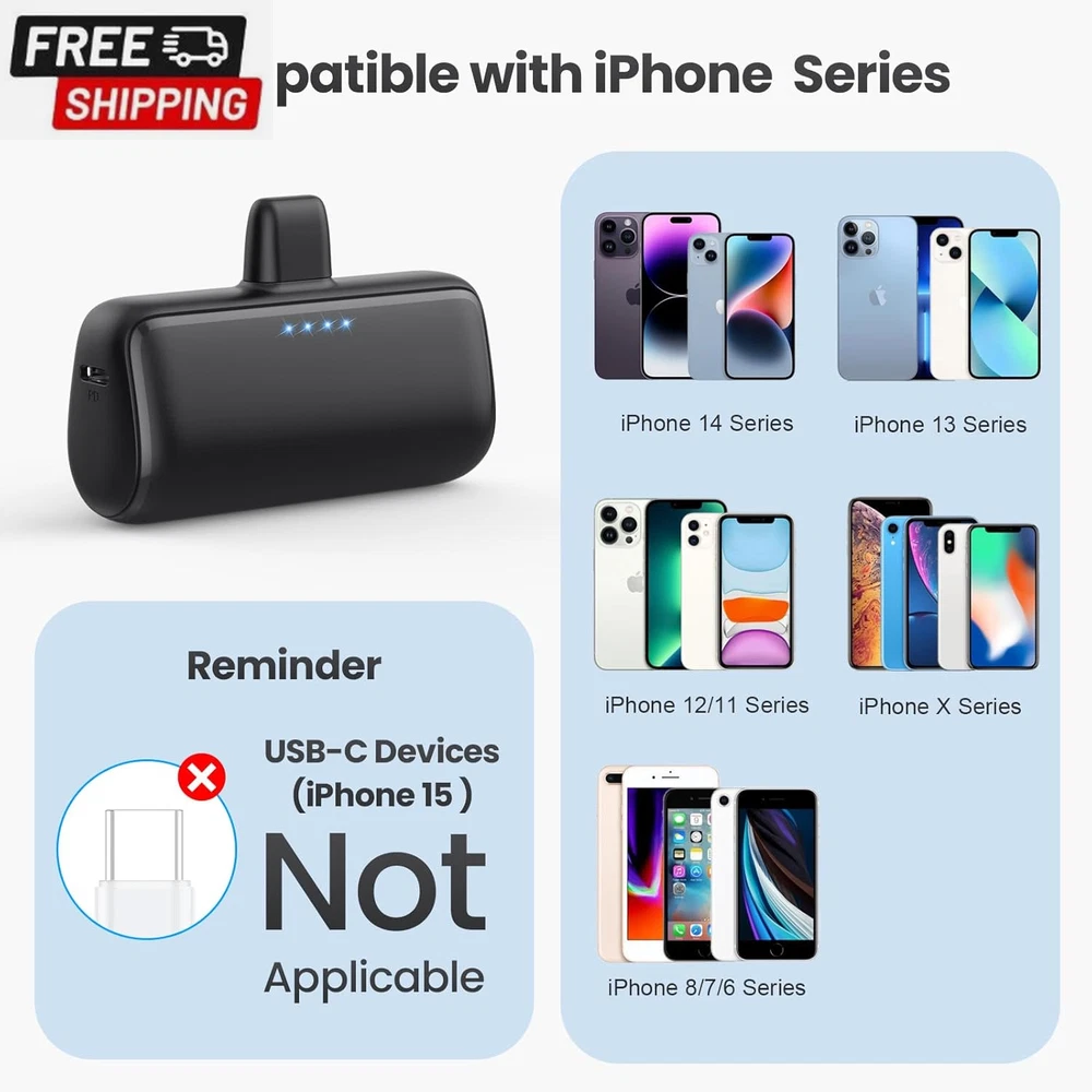 Fast Shipping On All Items 30 Days Money Guarantee Customer Support Excellent Service 100% Satisfaction Satisfaction Guaranteed Mini Portable Charger Power Bank for Iphone,3500Mah Ultra-Compact PD Fast Charging Portable Phone Charger Battery Back Compatible with Iphone 14/14 Pro/14 Plus/13/13 Pro Max/12 Pro/11/X/8/7/6S/5S Etc Specification Battery Capacity 3500 Milliamp Hours Battery Cell Type Lithium Polymer Portable Yes Item Dimensions L x W x Thickness 3"L x 1"W x 1"Th Compatible Devices Compatible with iPhone 14/14 Plus/14 Pro/14 Pro Max/iPhone 13 /13 Pro/13Pro Max/13 mini/iPhone 12 /12 Pro/12Pro Max/12 mini/iPhone 11 Pro/ iPhone 11 Pro Max/ iPhone 11/iPhone XS/ XS Max/ XR/ X/iPhone 8/ iPhone 8 Plus/iPhone 7/ iPhone 7 Plus/ iPhone SE/iPhone 6s/ iPhone 6s Plus/iPhone 6/6 Plus/5S and other iPhone Devices. Model Number HX33H8 Connector Type Compatible with iPhone Item Weight 72 Grams Number of Ports 2 Connector Type Used on Cable Compatible with iPhone Color Black Model Name Mini Portable Charger Power Bank for iPhone Recommended Uses For Product Phone Additional Features Portable Charger Power Bank for iPhone ,Lipstick Size Portable iPhone Charger, PD Fast Charging Power Bank,Pocket Size iPhone Charger,Plug in portable charger for iPhone, Airline Approved Safety Travel iPhone Charger,Emergency Battery Backup Charger for iPhone Special Feature function(f) {var _np=(window.P._namespace("DetailPageProductOverviewTemplatesJava"));if(_np.guardFatal){_np.guardFatal(f)(_np);}else{f(_np);}}(function(P) { P.when('A').execute(function(A){ A.on('a:truncate:po-attribute-truncate-4:updated', function(data) { var isTruncated = !data.truncateInstance.getIfTextFits(); var seeMoreElement = document.getElementById('po-attribute-see-more-id-4'); if(seeMoreElement) { seeMoreElement.style.display = isTruncated ? '' : 'none'; } }) }); })); Portable Charger Power Bank for iPhone ,Lipstick Size Portable iPhone Charger, PD Fast Charging Power Bank,Pocket Size iPhone Charger,Plug in portable charger for iPhone, Airline Approved Safety Travel iPhone Charger,Emergency Battery Backup Charger for iPhone See more Power Source Battery-Powered Voltage 5 1.0 "th x 3.0 "th x 1.0 "th. Weight: 72.0 grams Item Description 【Built-in Connector for iPhone】This mini portable charger is specially designed for iPhone users, the built-in charging connector allows you to charge your iPhone directly anytime and anywhere,If you are a fan of ios Phone and tired of carrying cables, this small portable battery pack for iPhone is definitely the best choice for you. 【Potable Charger Only Compatible with iPhone Series】The Portable iPhone Charger widely compatible with iPhone 14, iPhone 14 Pro, iPhone 14 Pro Max, iPhone 14 Plus, iPhone 13, iPhone 13 Pro, iPhone 13 Pro Max, iPhone 13 Mini, iPhone 12, iPhone 12 Pro, iPhone 12 Pro Max, iPhone 12 Mini, iPhone 11 Pro, iPhone 11 Pro Max, iPhone X, iPhone XR, iPhone XS, iPhone XS Max, iPhone Se, iPhone 8, iPhone 8 Plus, iPhone 7, iPhone 7 Plus, iPhone 6, iPhone 6 Plus, iPhone 6s Series and other iPhone devices. (Note: Not compatible with iPhone 15 Series). 【Pocket-Sized and Lightweight 】The Portable iPhone Charger Size of a lipstick,compact and lightweight,it’s easy to slip into your pocket or your purse ensuring convenient on-the-go charging. 【Emergency Battery Backup Charger for iPhone 】You can power for your iPhone in emergency, this power bank is true 3500mAh,normally support around 0.6-0.7charges for your iPhone, which is very suitable as a backup power supply for daily use,also the lightweight portable charger is perfect for travel. 【What You Will Get 】Mini Power Bank for iPhone x 1,USB-C charging cable x1,User Manual x1,and Protective Bag x1. Together with 365-Days replacement warranty and lifetime technical support. Any questions, please kindly contact us anytime. 【Warm Tips for Charging Compatible with Phone Case !!】 This Power bank is compatible with phone case thickness less than 1.7 inch. If your phone case thickness is beyond 1.7inch, the charging port can not plug into charging slot, you need to remove your phone case. Product Description Mini Portable Charger Power Bank for iPhone,3500mAh Ultra-Compact PD Fast Charging Portable Phone Charger Battery Back Compatible with iPhone 14/14 Pro/14 Plus/13/13 Pro Max/12 Pro/11/X/8/7/6S/5S Mini Size Easy Carry Great good-looking portable plug-in power bank. Extreme small and lightweight ,only 72g and as mini as lipstick ,you can carry it to anyplace with you very easy. Plug in and Powered on Built in plug-in plug, no cords hang, just push the mini power bank into the Phone charging port directly. Plug in and Powered on, very convenient to use for any occasion. Multi-colors Available - Ideal Gift for Him and Her Features a colorful design for a touch of personality to your iphone, while Cute and Unique design, a ideal gift choice. Advanced Pass-Through Technology The mini Portable Charger allows you to charge your devices while re-charging the power bank itself, ensures the power bank is always topped up and ready to go. Important Tips for Charging through Phone Case This portable charger is compatible with phone case thickness Less than 4MM. If your phone case thickness is beyond 4MM, the power bank built-in plug can not plug into charging slot, you need to remove your phone case. Must Know Before You Buy ! Portable Charger is Specially Designed for iPhones Series Phones Portable Charger for iPhone 14/ iPhone 14 Pro/ iPhone 14 Pro Max/ iPhone 14 Plus/SE (3rd Gen) Portable Charger for iPhone 13/iPhone 13 mini/iPhone 13Pro/iPhone 13 Pro Max Portable Charger for iPhone 12/iPhone 12 mini/iPhone 12Pro/iPhone 12 Pro Max/SE (2nd Gen) Portable Charger for iPhone11/iPhone11Pro /iPhone11 Pro max Portable Charger for iPhone XS/iPhone X/iPhone XS Max/iPhone XR Portable Charger for iPhone 8/iPhone 8 Plus/iPhone 7/iPhone 7 Plus/SE (1st Gen) Portable Charger for iPhone 6/iPhone 6 Plus/iPhone 6s/iPhone 6s Plus and also Portable cha