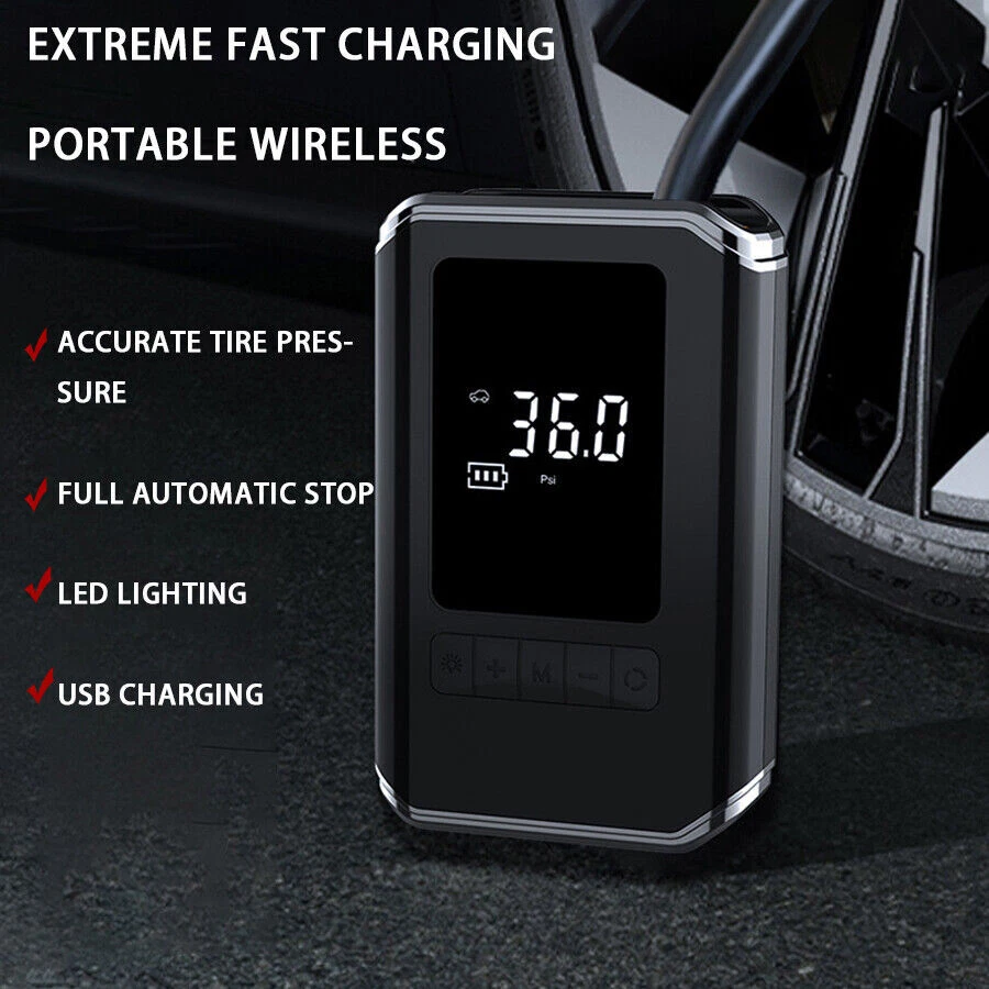 This mini air pump is a lifesaver! Super portable yet powerful—fills my car tires effortlessly in minutes. Love the bright LED display and multiple modes for bikes, balls, and more. Charges fast and holds enough juice for multiple uses. Super handy for emergencies or quick top-ups. No more struggling with bulky pumps—super compact and easy to toss in the trunk. One of my best purchases!