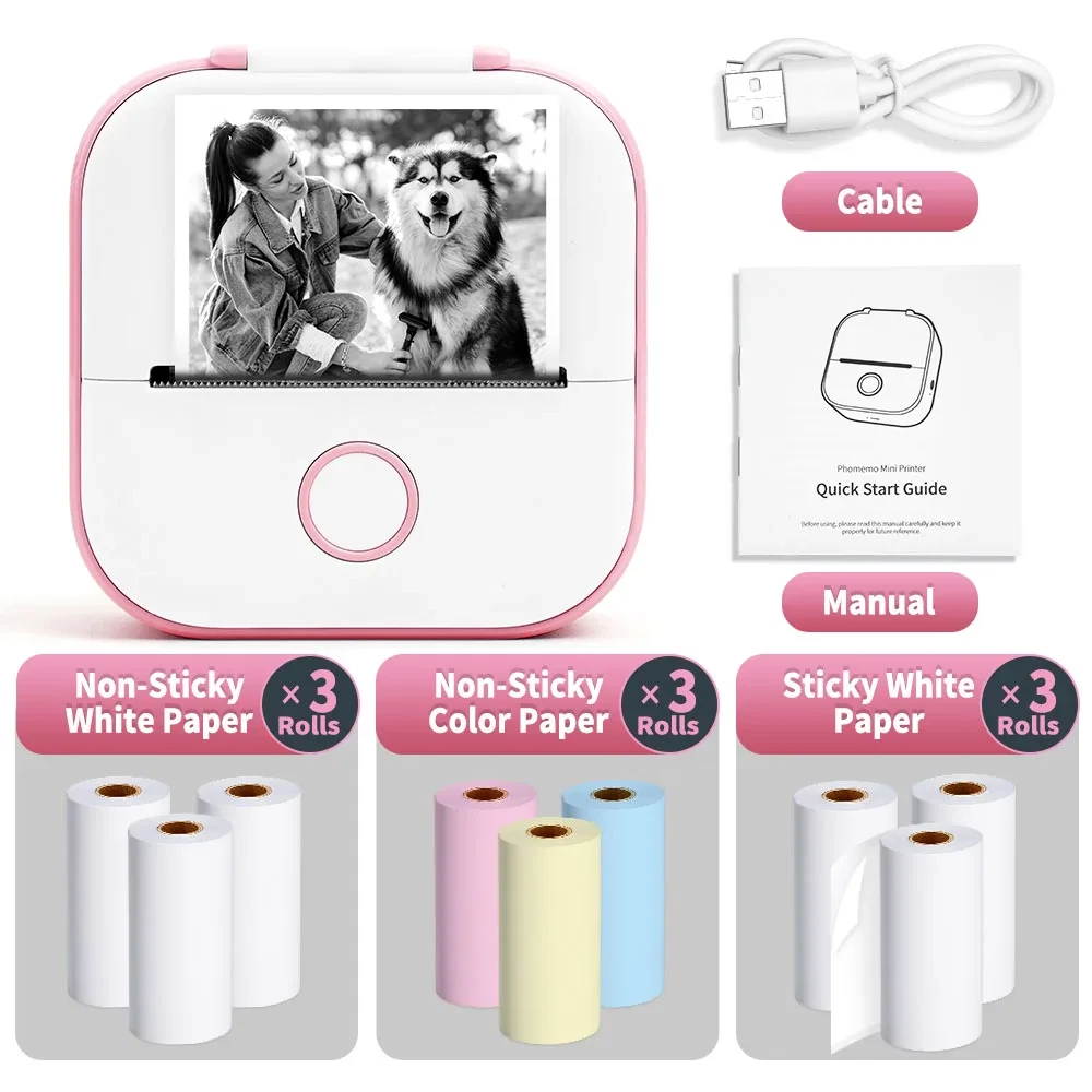 Phomemo T02 Feature: 🚀 [Enjoy More Interesting Life] -- New style inkless pocket printer is used to print pictures/photos, memos, shopping lists, study/meeting notes, etc. Mini sticker printer machine—it's a great helper to decorate your bullet journal more memorably, to make photos more stylish, to organize study notes more efficiently, to keep track of happiness moments at time, etc. Undoubtedly, it must be a special gift for children, students, teachers, and DIY craftsmen on Christmas, Children's Day, and Thanksgiving Day. 🚀 [Easy to Use Mini Sticker Printer] -- Blue compact travel wireless printer-wireless Bluetooth-connected sticker printer. This pocket mobile printer supports systems for iOS 9.0+ and Android 4.0 and above, but not support computer devices. Connect to the Phomemo app in 3 seconds; you can use it immediately. 🚀 [Multifunctional Phomemo APP] -- Every two weeks, we will update an abundance of templates, graphics, themes, and fonts, ranging from 10 to 90 sheets. Besides, the size and type of them are adjustable. Importantly, everything in APP is free forever. Only one-key printing, saving you much time, making your work richer, and life more funny. Hurry to enjoy your printing journey! 🚀 [Excellent Printing Quality] -- You can adjust this sticker printer machine's printing density to enhance the printing effect. Maintain 10 years without fading. Besides, more than 10 printing papers are supported by this mini sticker printer, and an extra paper holder helps to print more neatly. 🚀 [Save Much Money] -- Our portable printer for iPhone, compared to other printers, needs no toners or ink. And with a built-in 1000mAh rechargeable battery, the mini pocket thermal printer has a longer-lasting use for 1 week. Portable wireless printers for travel - lower cost and compact size - must be a good travel partner! Phomemo T02 Specification: Printing Method: Direct Thermal Printing Size: 3.4 X 3.5 X 1.6 / 87 mm X 90 mm 40 mm Nett: 5.3 oz/150 g Colors: Tiffany/Pink/White Printn: 203 dpi Batteryy: 1000 mAh Effective print 1.88"/48 mm Thermal Papere: 2 X φ1.2 / 53 mm X φ30mm Required System: Android/ioS Charging Port: Micro USB Power Supply: Lithium Battery Phomemo T02 Packing Includes: 🌈T02 Printer*1 🌈Data Line*1 🌈Paper Holder *1 🌈50*1.5m White Sticker*1 🌈User manual*1 Drop-shipping is welcome!!! We support CSV file or you can order directly by Aliexpress ( can use the plugin DSers ) ●No QR code! No invoice is in the Package! ●Always can send out the packages on the second working day! Contact us to get the pictures and videos without a watermark! ● Tel./Whatsapp: +86 132 2641 3659 ●Email: phomemo_official@163.com
