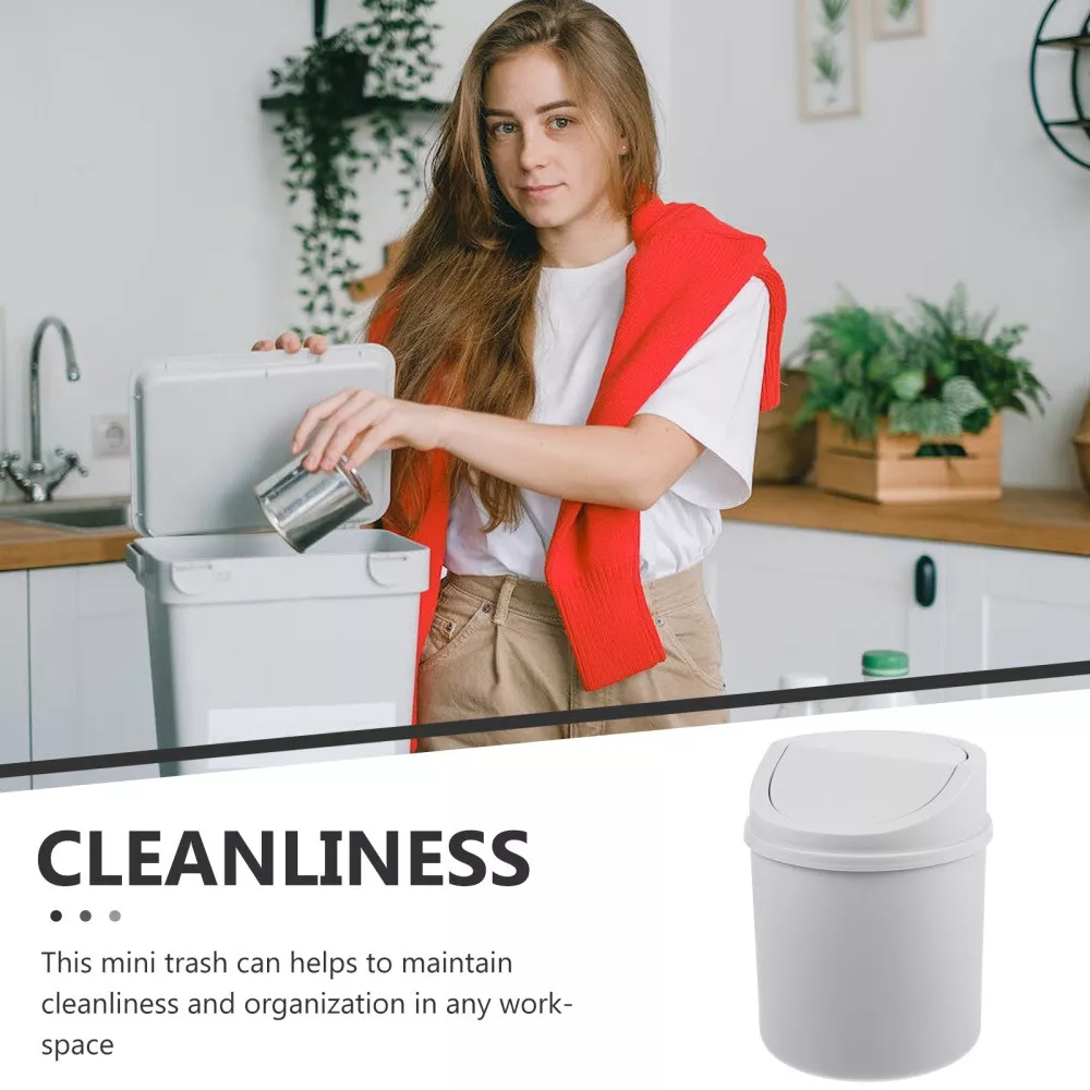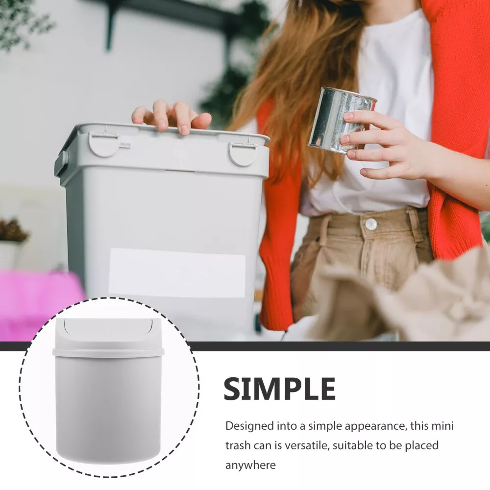 Mini Table Trash Can Bathroom Swing Lid Small Tabletop Bin Garbage with